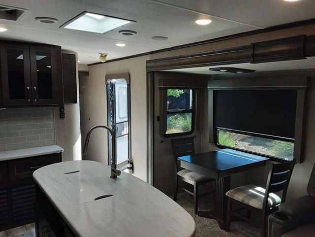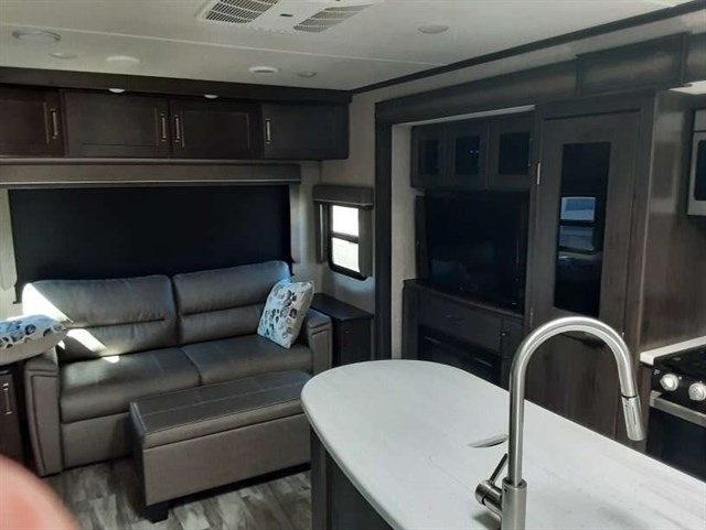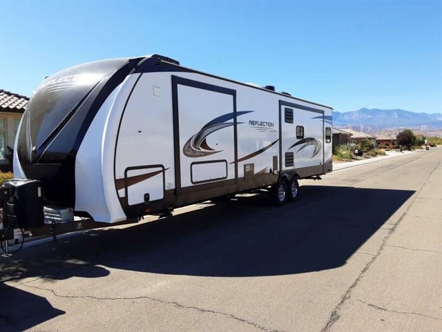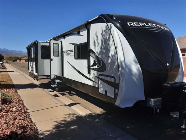 If you are a couple that enjoys traveling in luxury with your own accommodations, then you will be excited each time you get this Reflection travel trailer out of storage. You can even invite over a few overnight guests. Just imagine sitting in the rear living area on the furniture provided while visiting with the cook preparing meals at the kitchen island or washing dishes in the large sink. You might even glance over at the 40" TV and fireplace every once in a while. You will find storage everywhere you look including outside in the unobstructed pass-through compartment. This model has many more standard features to enjoy and options to choose from to make this your perfect full-time or weekend retreat on wheels.