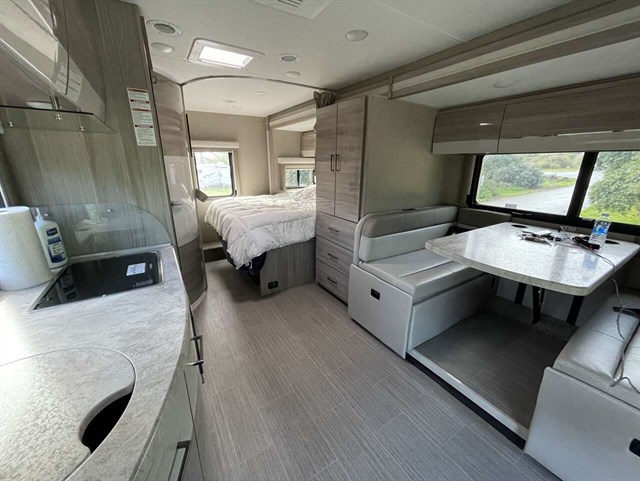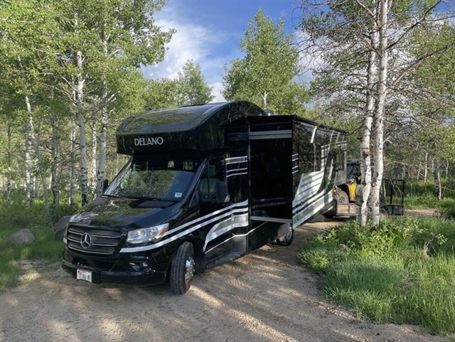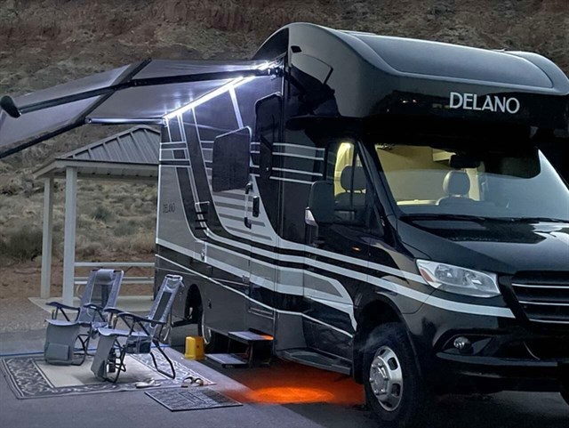 2023 Delano 4 Season Class C Diesel on a Mercedes Sprinter Chassis. This like new Delano coach from Thor is stored inside and has a lot of nice features. One of my favorite things is the Bluetooth capable control center. Everything in the coach can be controlled from the panel or your smart phone with an app. I like being able to run the slide in and out while standing outside ensuring the slide does not hit anything.