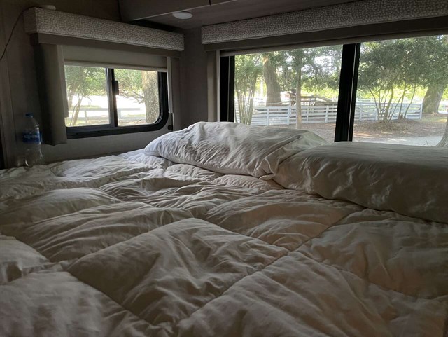 This coach sits on a Mercedes 3500 chassis is easy to drive and gets 14MPG.