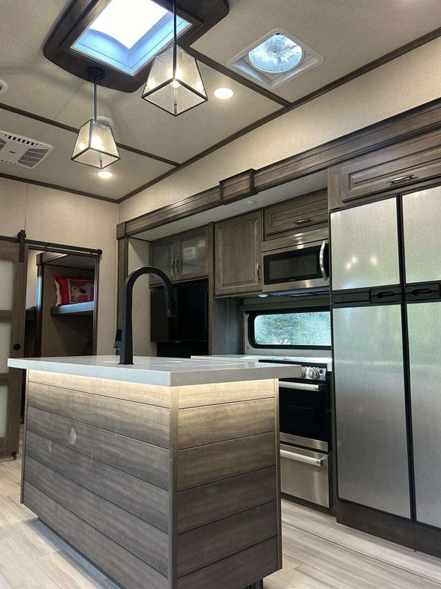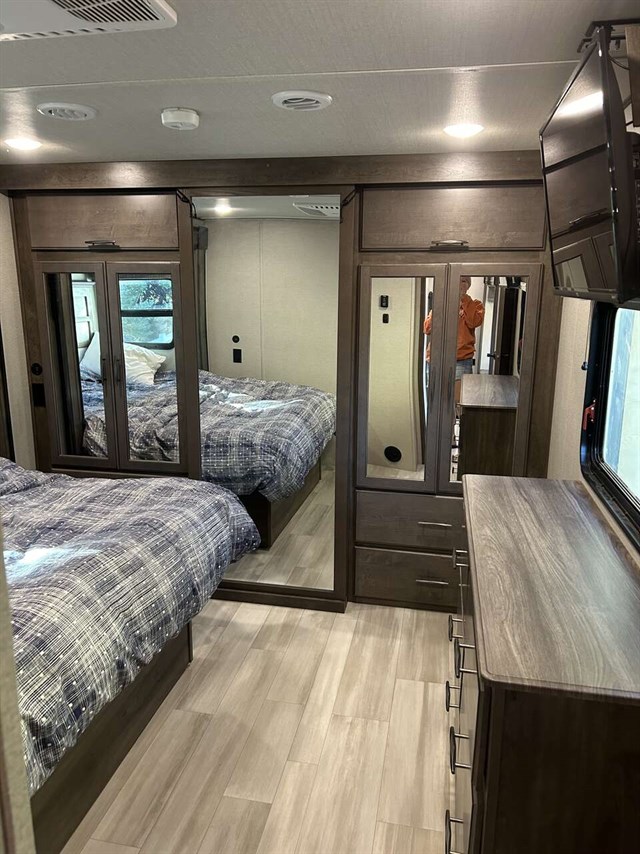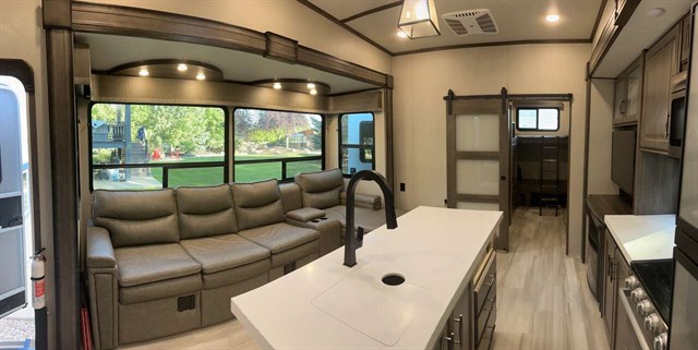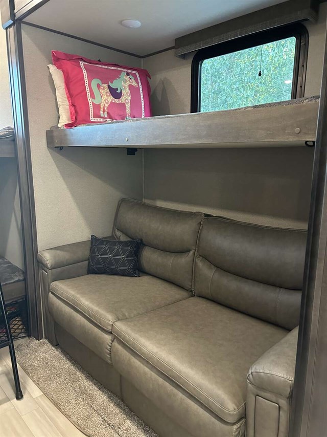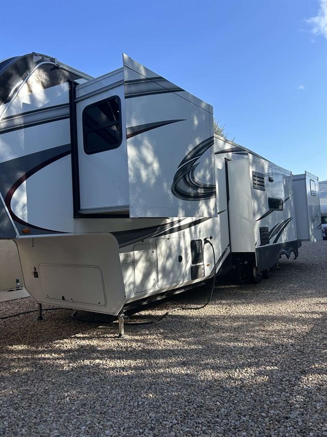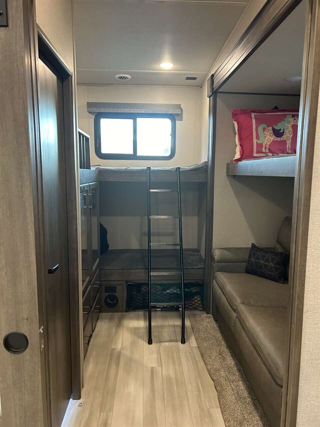 This trailer is amazing! Fully loaded, auto level, auto hitch height, 4 slides, 1 and a half bath, power flush system, power awnings, 2 ac units, fireplace, bunk beds with couch in kids room in back, outdoor kitchen, huge fridge, microwave, gas oven, 2 black tanks, 2 gray tanks and 96 gal fresh water. Prewired for solar and generator, led lighting. Please call or text with any questions. Really beautiful unit. $80,000.00 or best offer.