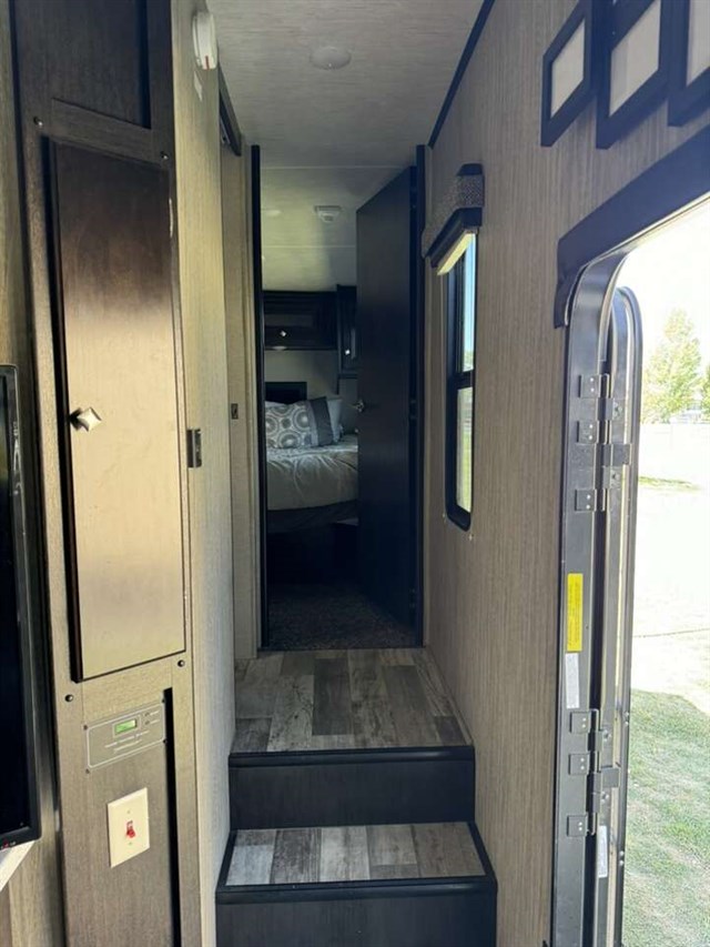 Solar panels on the roof with a solar charge controller with four deep cycle batteries. It also has a 3000 watt inverter with an automatic transfer switch. Basically you can power all of the outlets in the trailer just off of solar.If you’re out in the wilderness and enjoying primitive camping, this setup is awesome. The Anderson hitch is included with the trailer. It comes with a full cover as well as a cover for the fifth wheel hitch on the trailer. I am the original owner. Selling because I sold my Rzr and no longer have a need for this trailer.