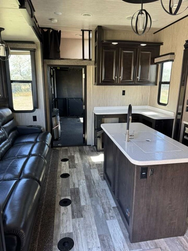 I have a 2019 Heartland Road Warrior 396M with a 15 foot garage. It has an on board Onan generator. 100 gallon fresh water tank. 30 gallon tank with fuel pump, a 20 gallon tank for the generator. It has an extra large fridge.3 AC units. It is fully insulated underneath. I have added solar to this RV. It has