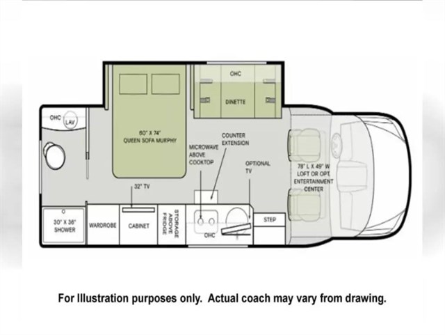 For all of your adventures, you will appreciate the convenient and functional amenities found in this Wayfarer Class C diesel motorhome! The 24" x 36" shower in the rear bathroom is a private location where you can get ready for the day, and the Murphy bed is such a great addition because it can be folded away to reveal more interior living space. You will find it easy to create those home-cooked meals that you love with the LP cooktop and convection microwave in the kitchen, and the over-the-counter lighting, as well as the under-the-counter lighting, will be both beneficial and stylish.