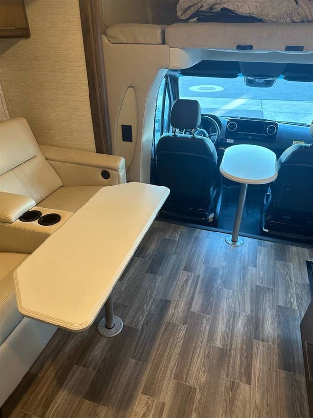 The Wayfarer Class C diesel motorhome from Tiffin Motorhomes offers you more of everything you need along with the luxurious styling and amenities you want! Spacious interiors, industry-standard safety features, and high-performance upgrades embody the heart and soul of every Wayfarer. Starting with a Mercedes Sprinter chassis, a 7G-Tronic automatic transmission, plus a 5,000 lb. hitch capacity, you can plan your trip across the states. The 10.25" MBUX infotainment system with in-dash navigation will make your journey that much easier and you're sure to stay comfortable in the black leather seats. Each model features a soft vinyl ceiling, a designer faucet in the kitchen, LED reading lights and nightstands in the bedroom, plus a porcelain vessel sink with a chrome faucet in the bath that will add luxury to your morning routine. Outside, the 16' Girard power awning with speakers will provide an outdoor living space, the hydraulic leveling system will make setting up a snap, and the eight-step full-body paint system is sure to turn heads wherever you choose to travel!