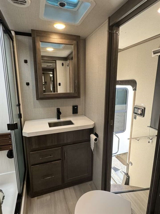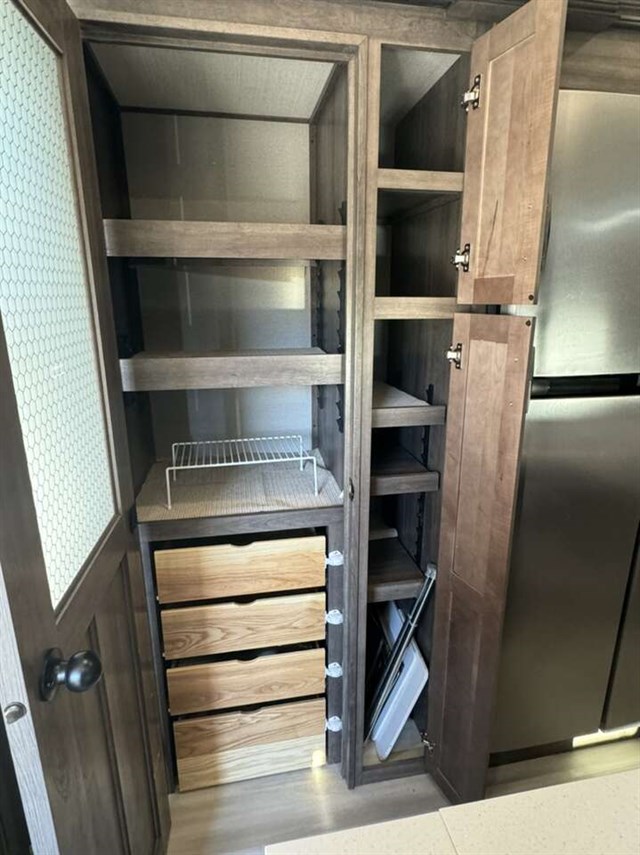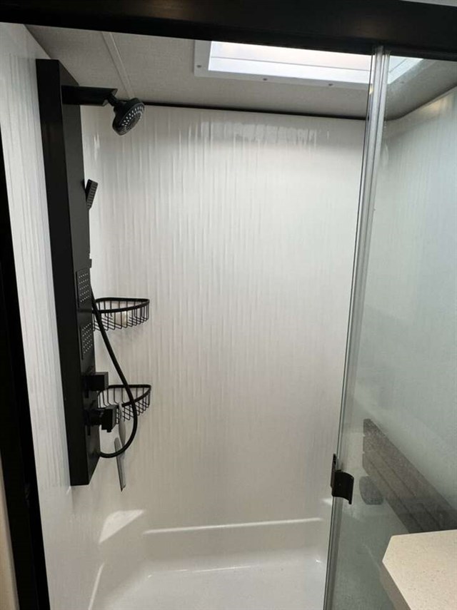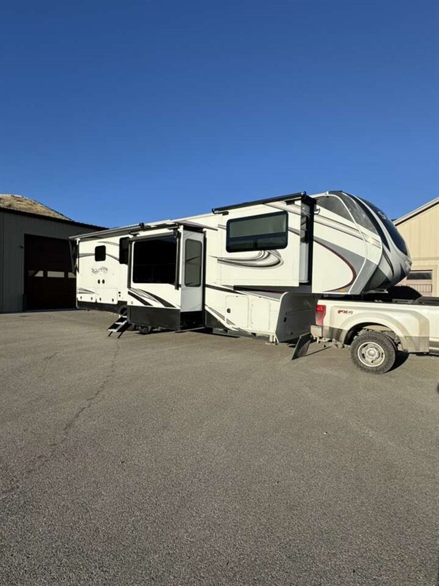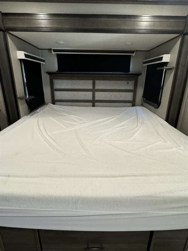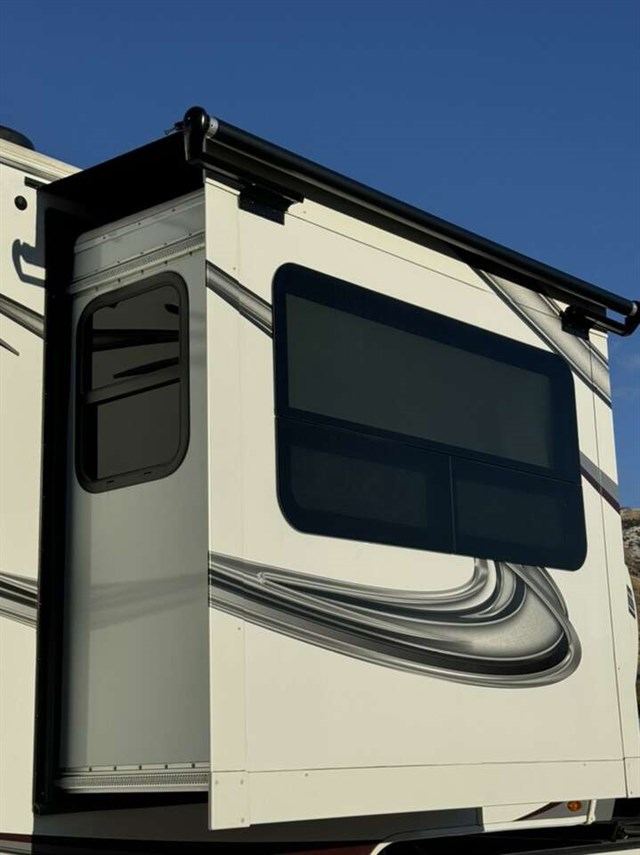 With any Solitude fifth wheel by Grand Design, you will get maximum insulation from the thermal roof design, the exclusive fully laminated walls, the triple insulated main floor, the Rail-Tite underbelly seal, the insulated gooseneck and the insulated baggage doors. The MORryde rubber pin box system utilizes a unique rubber shear spring to positively deal with rough towing and road shock, the Tire Linc TPMS system monitors pressure and temperature, and the 6-point hydraulic system allows you to setup easily. And the upgraded shower system, the hardwood window valances, the oversized kitchen pantry, the window above the master bed headboard, and the Rockford Fosgate stereo entertainment system with HDMI and App controls are a few more reasons you will love this extended-stay fifth wheel.