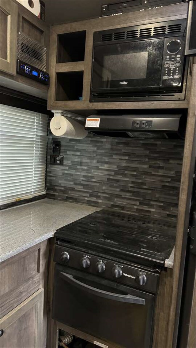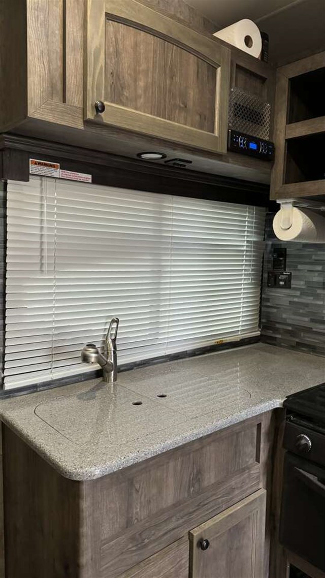 The trailers motherboard was just barely replaced in it also. It has 2 screen tvs and two captain chairs, bunk beds, two tables, and lots of storage. It has a queen bed in the back, 2 pull out couch beds, and a top bunk which I believe the size of it is a full. A ladder to climb up to the top bunk. 1 dvd player. We loved this trailer and we are sad we have to sell it!