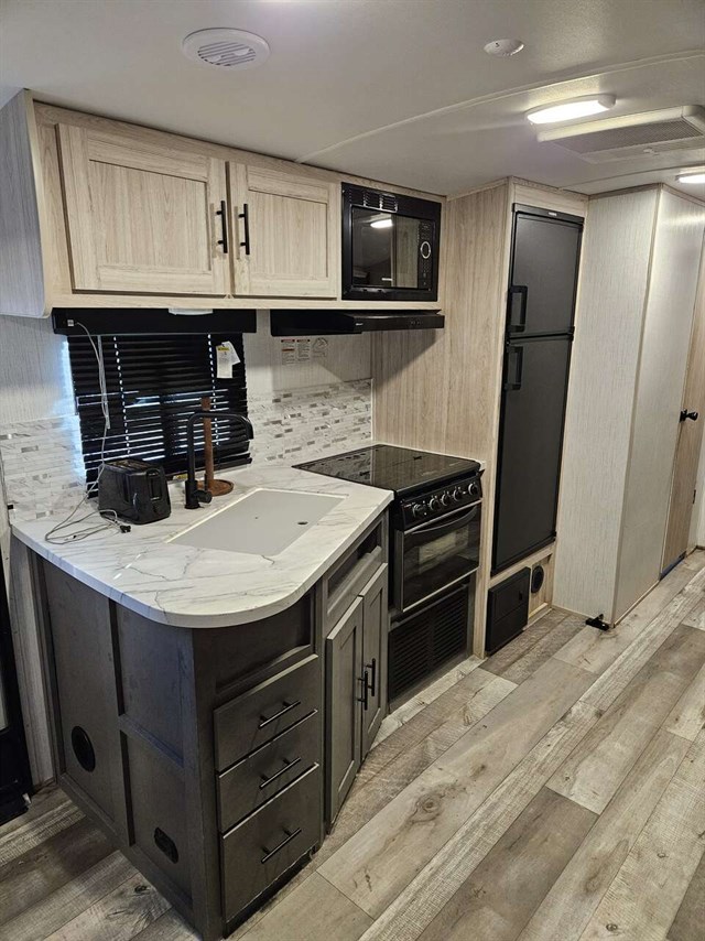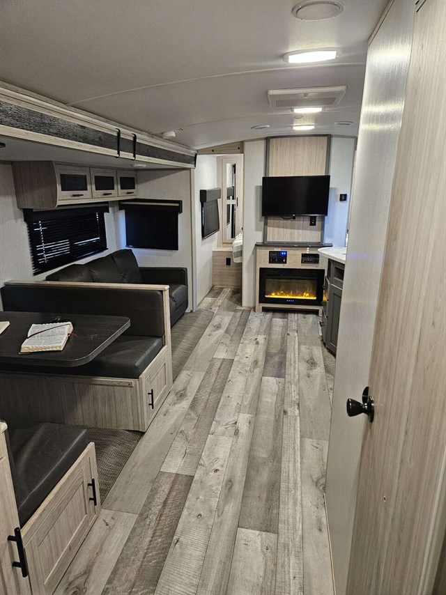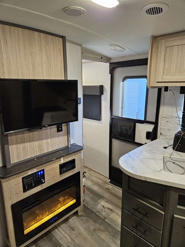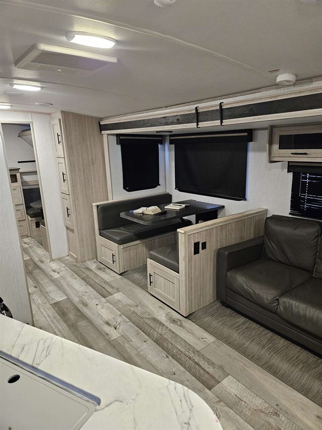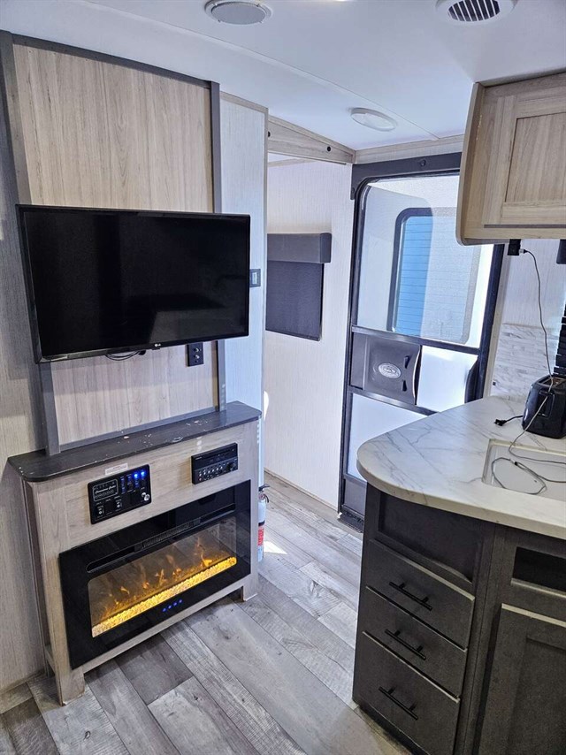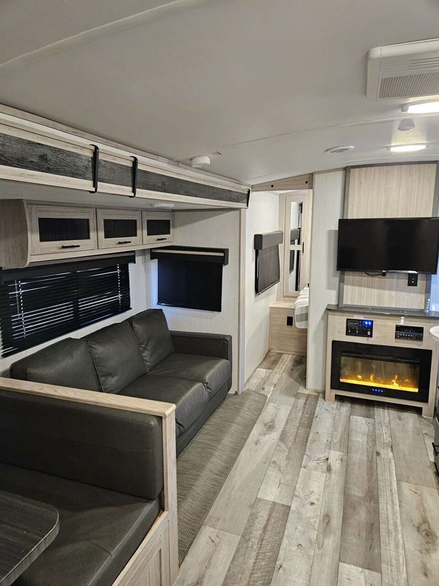 The Heartland Sundance Ultra Lite travel trailers and toy haulers are exceptionally beneficial for a family who is just starting out in the RV lifestyle. Each unit is constructed with an enclosed underbelly, a painted fiberglass front cap with LED lights, a walkable aluminum trussed barrel roof, and a rack and pinion power slide out. You'll have a spare tire and carrier for life's unfortunate mishaps and one unique key for all of your locks with the Keyed Alike system. The interior offers you woven flooring and residential-style furniture for a long-lasting traveling companion. You can use the outside spray port with a hose and sprayer for cleaning or hosing down the campsite.