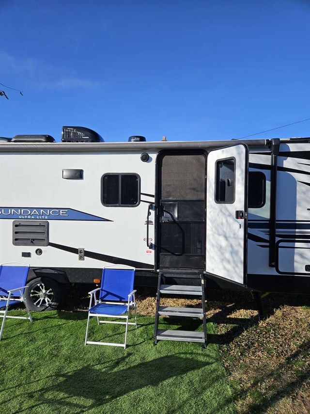Many memories will be made in this Sundance Ultra Lite travel trailer! You will have extra living space with the large slide, and the two bedrooms allow everyone to have a separate space to sleep. The main living area offers you a sofa and booth dinette to relax on, and a 39" LED TV, you can watch a show while you relax. Spend some time whipping up a quick meal on the three-burner range, or head outside to the outdoor kitchen to do your cooking if you want to soak up that summer air. While you're outside, you'll have an 18' electric awning with LED lights to keep you protected.