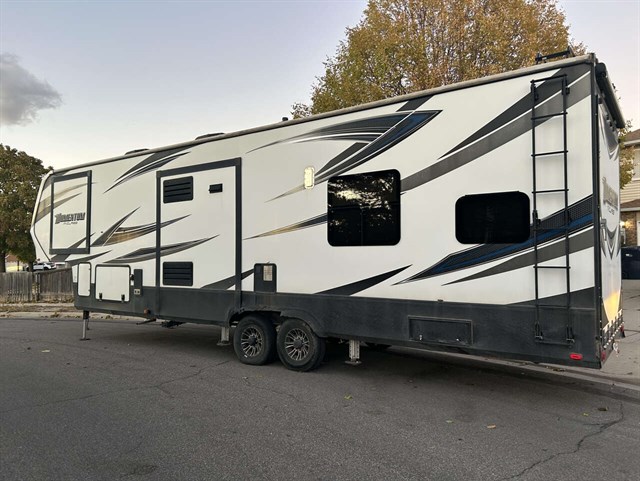 The pictures of the inside are NOT all of my trailer as it’s parked where I can’t open the slideouts and I don’t have a truck to pull it. Those of the cargo area are my trailer. If you come look at it and can hook it up, we can easily pull it out and open the slide outs. This is the EXACT layout of my trailer except mine has a queen in the master so the right storage area is a little bigger.