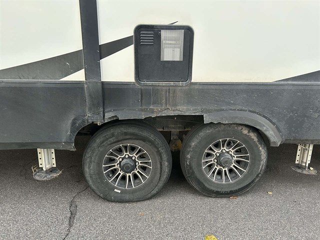 Cosmetic damage around wheels from previous blowouts. Now has upgraded wheels but not new. Some dents and scuffs inside due to normal wear and tear.