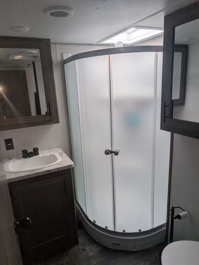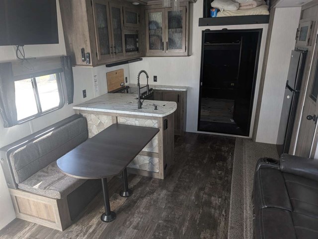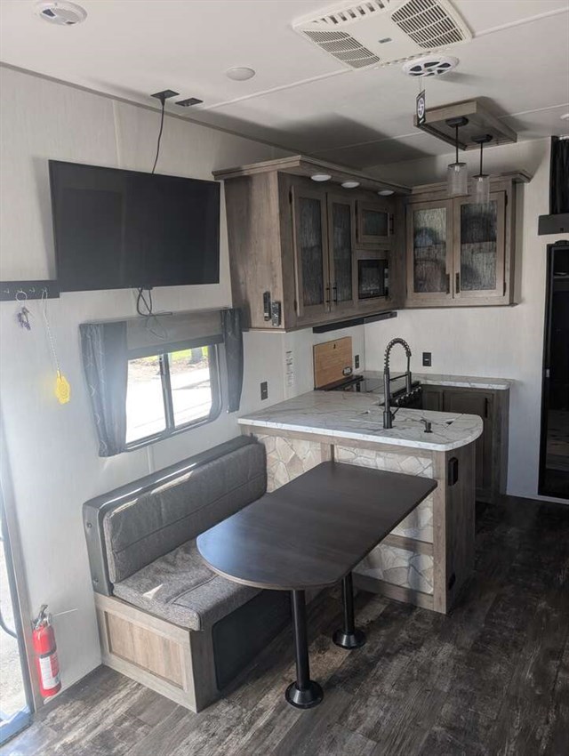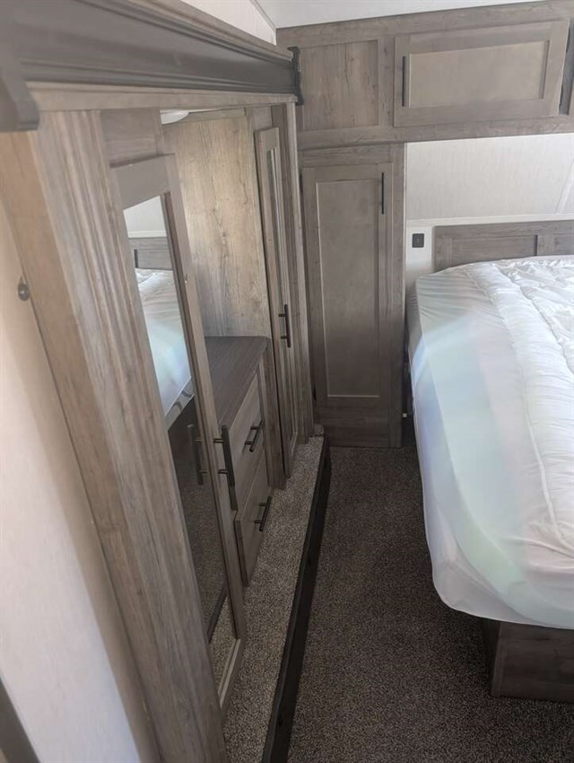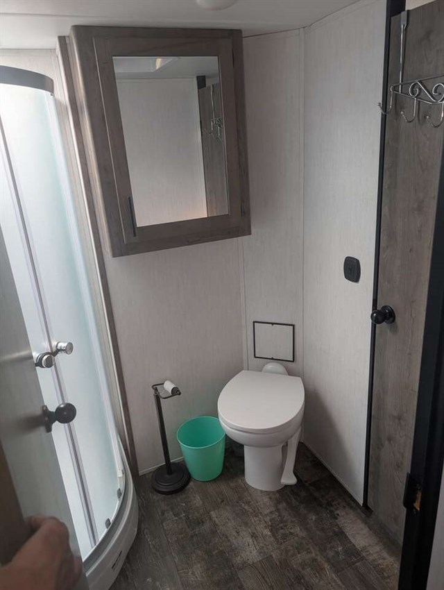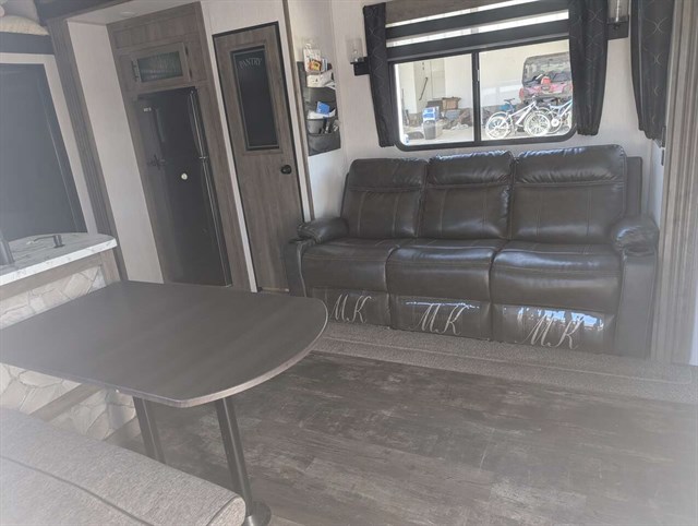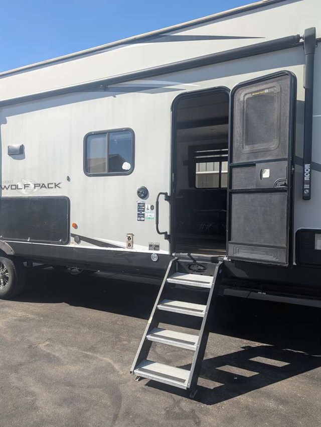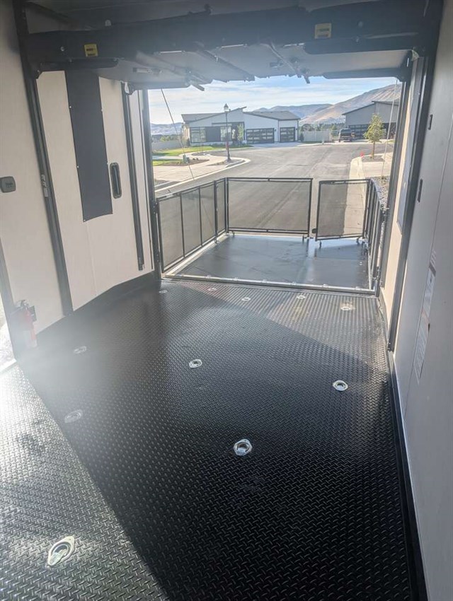Onboard Yamaha generator, 17 foot garage with second convertible toilet and sink, rv washer hookups, two solar panels, upgraded to four 6 volt batteries system, 12 volt refrigerator, huge slide out in main living area, slide out in bedroom, two televisions, and much more.