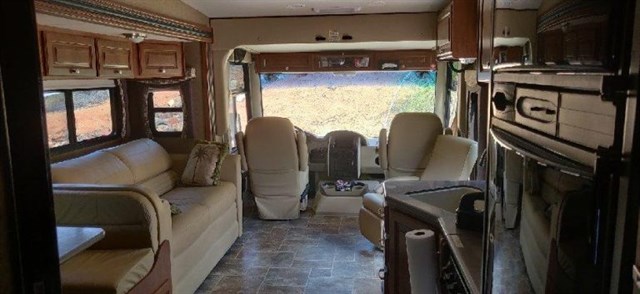 2014 Class A Thor Outlaw 37LS Toy Hauler Contact Private Seller 2nd Owner / Title in hand This coach is perfect for a large family. Everyone gets their own bed. We got it for camping, mountain biking and ski trips and it is perfect for all our gear. It’s got a ton of storage both inside and out. We love it. Low mileage and in really good condition. It recently had a tuneup and the RV tech did a 50 point inspection and there were no issues. The 37LS has an over-head bunk, queen bed in loft, sofa sleeper, a dinette sleeper and two jack knife sofas in the garage. A Ford 6.8L Triton V10 engine. There are 3 total A/C’s units with one being in the garage. The living area has leatherette seating for the driver and passenger seats and a dinette. This coach has hydraulic leveling. The kitchen has a gas 3-burner stove, an oven, and a microwave. The bathroom is very spacious and has lots of storage.