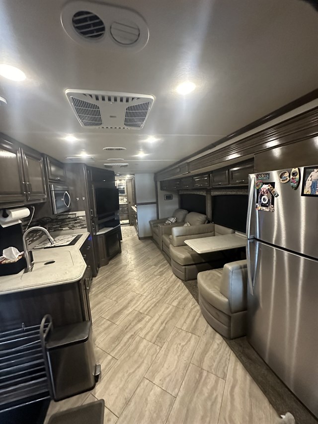 This rv is a full body paint and runs great. Solar and Bluetooth. Has a fireplace and 2 bathrooms. Washer and dryer. Motor is a 340 Cummins. Sits in a freightliner chassis. New batteries.