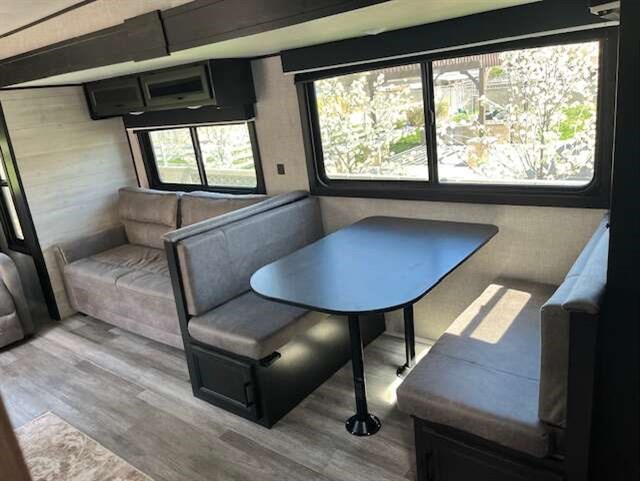 The mattress still has the plastic on it. This is truly a brand new, never been used trailer. We love the floorplan of this trailer. There aren't many NEW 2023 Jayco Jay Flights in this layout left. The 2024's in this model at Camping World range from 38-43k BEFORE any warranties, sway hitch, dealer doc fees are added. So you'll end up spending 50k for the same trailer, except it would be one year newer. We almost bought a 2024, but honestly like the 2023 better. The material on the couches/chairs is much softer along with other things. Its got heat/air conditioning/solar panels/custom solar panel switch on/off (we asked for this to be added so you can turn off the solar panels). This trailer is loaded and ready for your recreational fun!