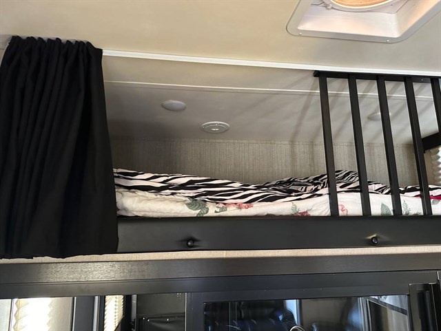 The 8' zero gravity ramp door will make loading and unloading easy into the 12' 6" cargo space where you will find tie downs to secure your things as you travel. You will also enjoy this living area once you reach your destination and the cargo is removed. There is a lay flat Happy-jack power bunk with lower sofas and a table top for dining and extra sleeping space. The twin bed loft is perfect for your young traveler to enjoy. Plus the side man door makes getting to your toys easy when the ramp door is closed.