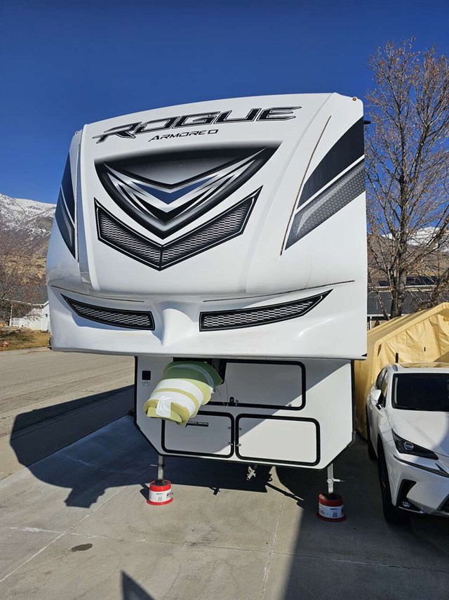 Every one of these Forest River Vengeance Rogue Armored fifth wheel toy haulers come with the features you want most at an affordable price tag! The DUR-A-POXY cargo floor has 5,000 lb. tie downs to ensure your toys will arrive safely without damaging the flooring, plus the 8' ramp door makes it easy to load them. A 15,000 BTU air conditioner will keep you cool even on the hottest summer days. An enclosed and heated underbelly keeps your unit's vitals protected and a central docking station makes life a little easier. The Rogue Armored package comes with a six point leveling system, a comfort plus adjustable powered king bed system, and a ramp door patio system and much more!