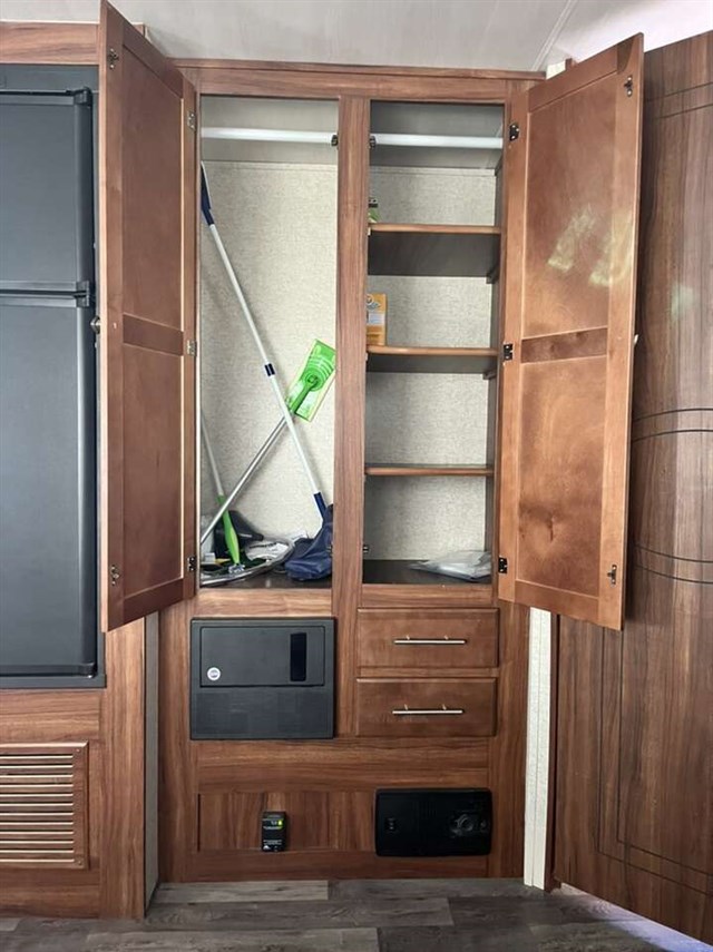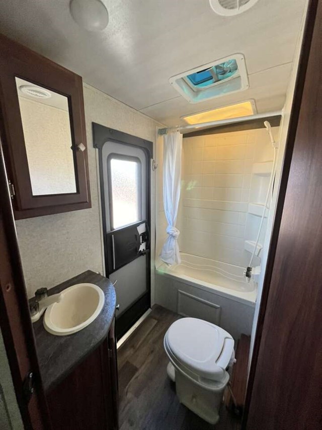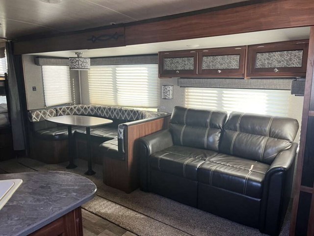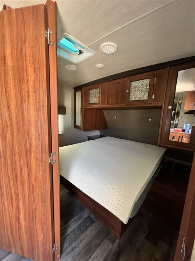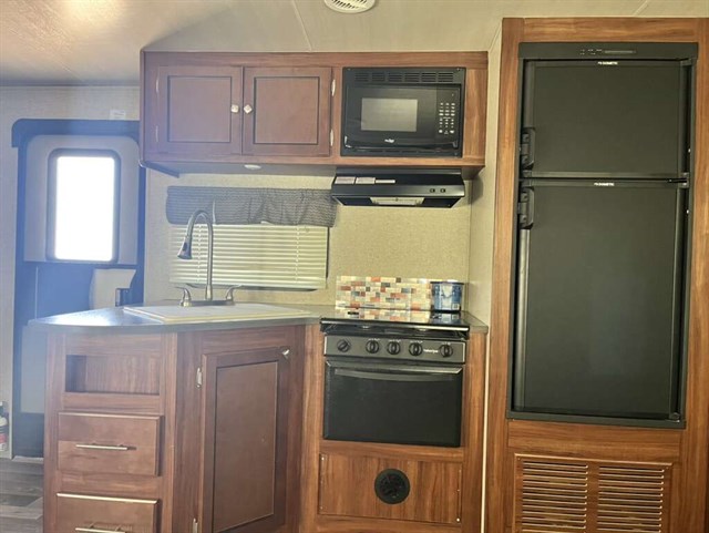 This trailer has been awesome. Some great features are it has two gray tanks, central vac, dvd/radio/bluetooth, electric awning, electric stabilizer jacks, and 2 entrances. The tires are only a year old. Everything works great.