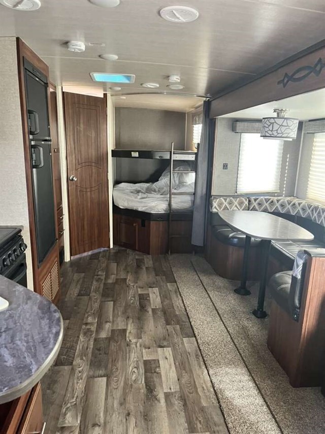 You can go just about anywhere you want with this Wilderness travel trailer features a rear set of queen size bunk beds that the kiddos are sure to love. There is a private front bedroom for your convenience that will help give you a good night's rest for you next adventurous day. A U-shaped dinette is where you can enjoy your delicious meals at or even use it as an extra sleeping space.
