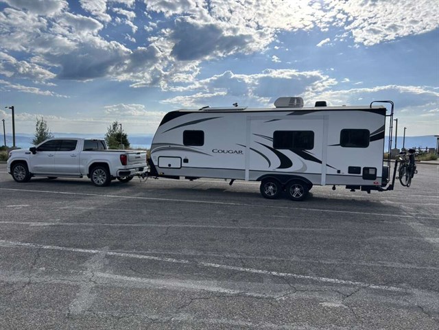 2021 Keystone Cougar travel trailer 24 foot. Sleep 6, Very unique trailer with Jack and Jill bathroom. Used about six times only. Great Condition. Always stored indoors. 36 inch slide, 32 inch TV with DVD and CD player, FM radio with indoor & outdoor speakers, comes with Many Extras, Back up camera already installed. Thin shades in the doors already installed, which are mini blinds. Large outdoor rug. Custom-made king mattress which is firm on one side soft on the other paid $650. 8 inches thick. Vent cushions to block out sunlight from skylights if you wish. 2 bags of will Chalk levelers, Water purifier, 2 Water pressure regulators, Solar panel on roof and additional external Solar panel 120 W. Great for Boondocking when you are without power hook ups. We are also including the bike rack that holds up to 4 bikes. We will also include the New $550 sway bar, New gray, black water drain hoses. We also have a small solar panel to keep the batteries charged when you are parked not in use. Tires in Great condition very little use. Title in hand. Please call if you have any more questions. Purchased for 54,000 selling for 36,500.