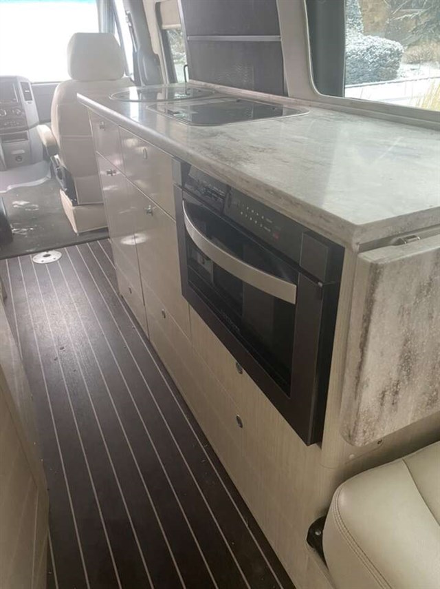 When you need to reply to some emails or get some work done while you’re on the road, the 24GT’s convenient work station is the perfect spot. The driver’s seat swivels around to become your chair, and the table top easily assembles for a perfect work-space. USB charging ports are right where you need them, along with an overhead reading light and a TV.