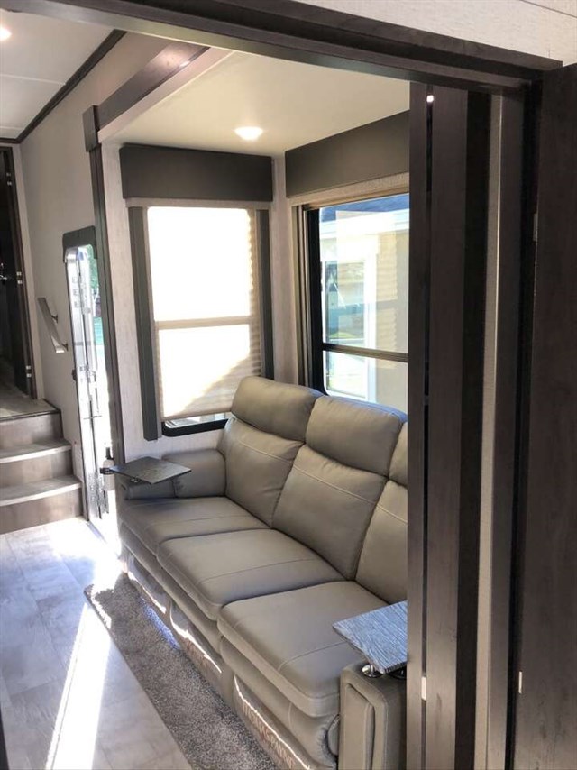 Are you looking for adventure and fun? The Momentum G-Class toy hauler by Grand Design will help you find it! You can explore during any season you choose with the Insulation Package that includes a heated and enclosed underbelly with suspended tanks, a high-capacity furnace, a moisture barrier floor enclosure, and cabinet-mounted heat ducts. Each model includes a 30-gallon fuel station with an interior and exterior gauge, a dovetail rear rend, and 2,500-LB tie-downs anchored into the chassis. Throughout the Momentum G-Class interior, you'll enjoy many comfortable features like large panoramic windows, a shower skylight, USB chargers in the bedroom, and residential cabinetry.