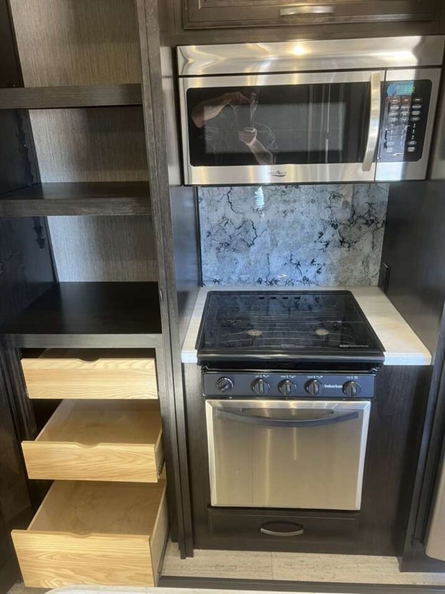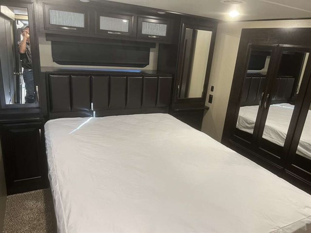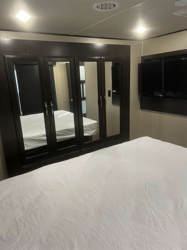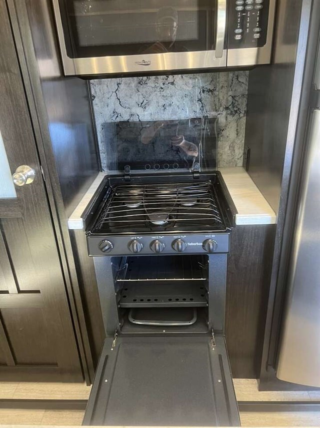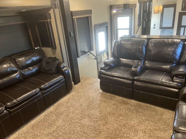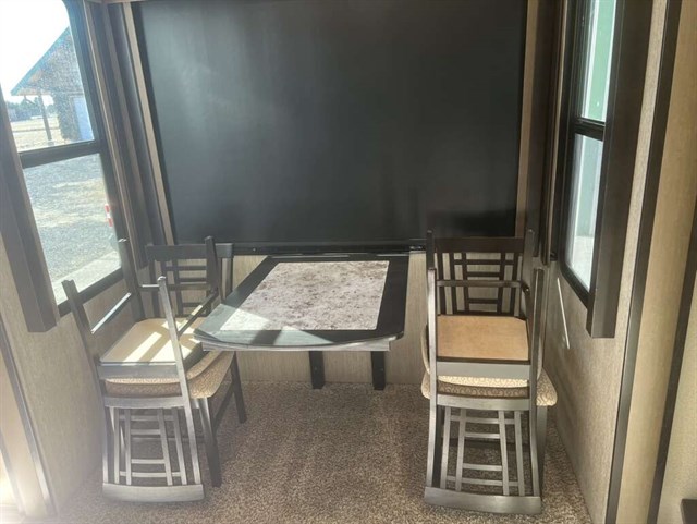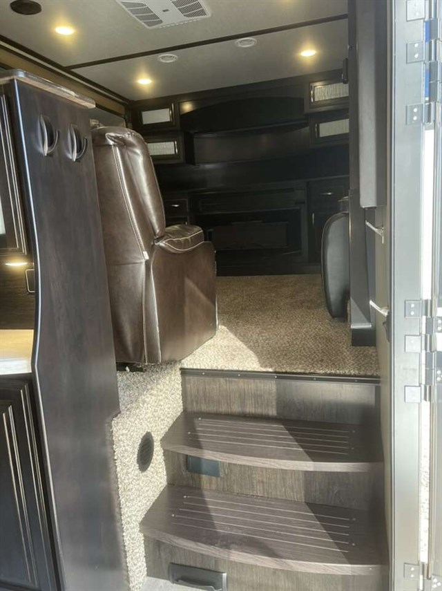 When you are ready for some off-road fun, hitch up this toy hauler fifth wheel to head to your favorite trails! This Momentum 376TH has a unique below floor garage with a bedroom above. After a busy day on the dunes, you can entertain guests in the front living area which includes a telescoping 49" LED TV with fireplace. You will find the separate kitchen area has all the amenities necessary to make and eat meals including a free standing dinette and large pantry. You even have a washer and dryer in the second pantry if you want to keep your clothes clean the whole trip. You may choose to watch the exterior LED TV under the stars..There is much more to see inside and outside this toy hauler!