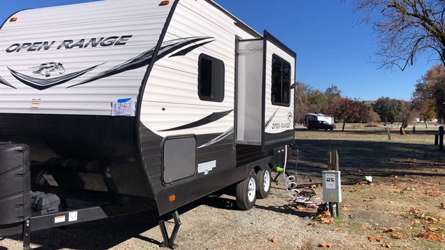 Selling my RV, Open Range, it's in very good condition, no damage. This is the perfect couple's trailer for room for an overnight guest on the jack-knife sofa. You'll appreciate a table in front of the sofa where you can enjoy eating together, and the slide out provides more space to move about. This model includes a front bedroom with a privacy curtain and dual wardrobes to store your clothes for the week, plus there is a full bath towards the back of the unit to stay clean each day. Snacks and paper goods can go in the entryway pantry, and camp gear can be kept in the outdoor storage! The affordable Open Range Conventional travel trailers by Highland Ridge are ready to meet your camping needs! You will appreciate the durable Magnum Roof system, plus each model is constructed with black front diamond plate protection, 5/8" main floor decking, and self-adjusting electric brakes with E-Z Lube axles for smooth towing. The 81" interior height means you won't feel cramped when relaxing with friends and family, and the residential vinyl flooring throughout is easy to clean, which will be perfect if you're camping with little ones or pets. These models also include a ceiling mount Bluetooth speaker, a digital TV antenna, plus a 13,500 BTU roof mounted A/C to keep you cool on those hot summer months.