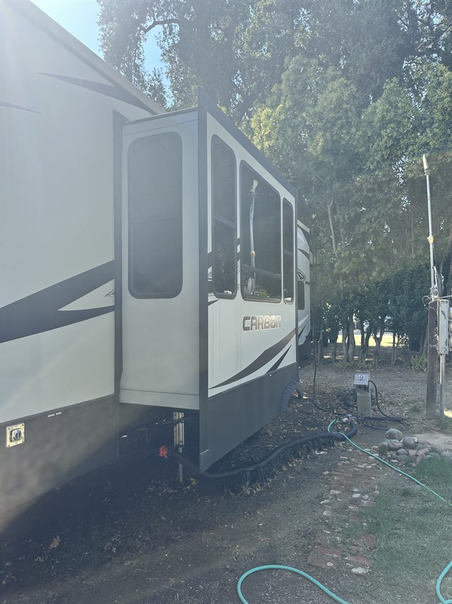These Keystone Carbon toy hauler fifth wheels are the perfect units for you and your toys! There are plenty of indoor luxuries with the stainless steel appliances, the supercharged A/C, the residential in-floor heat-duct system, and the safety package that comes with your unit. The package includes a carbon monoxide detector, an LP gas detector, a smoke detector, and a fire extinguisher. You will be safe while you travel! Outside there are some cool features as well; there is an electric awning, an outdoor shower to rinse off all the mud from the day,