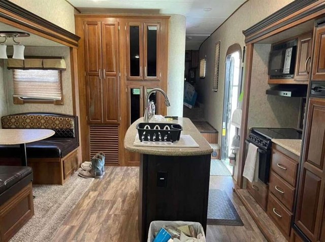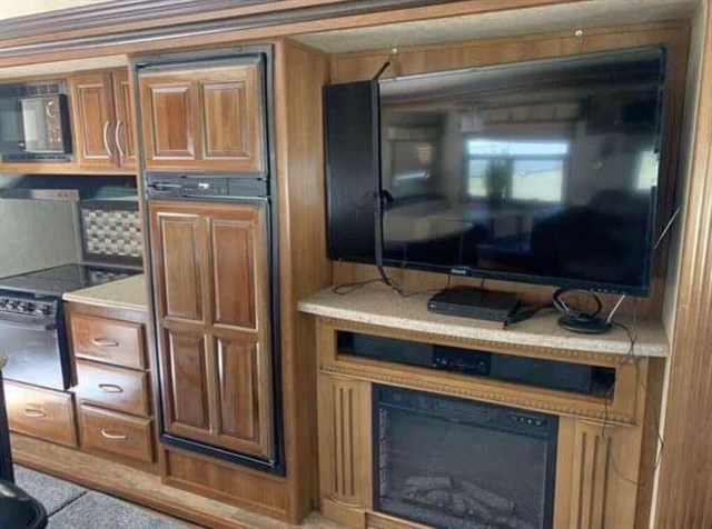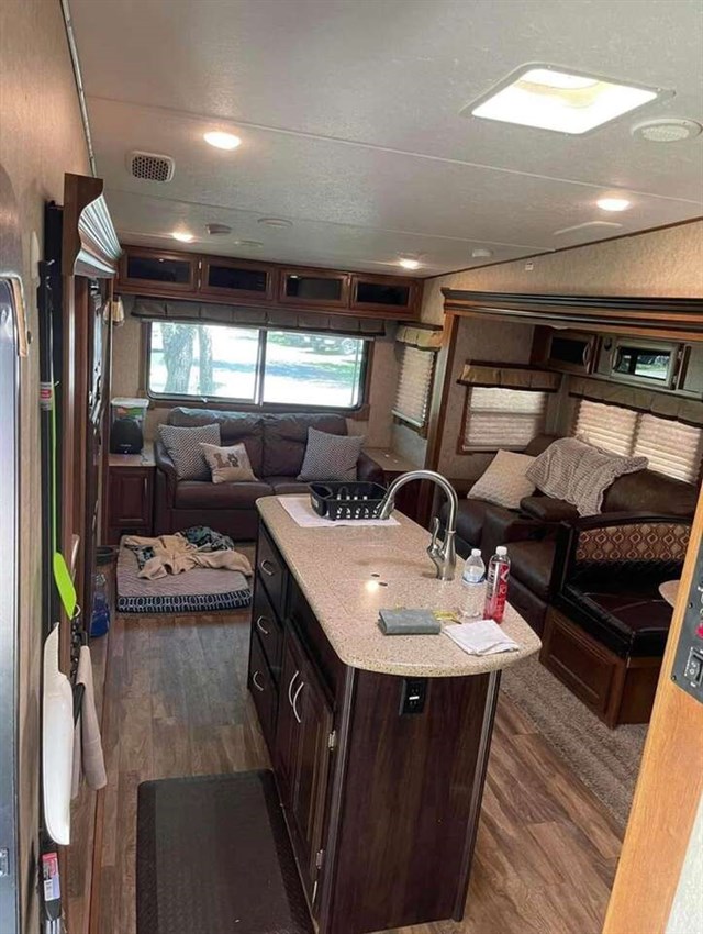 I can’t remember tank sizes but it’s big. I believe it either has two fresh water or two gray tanks.