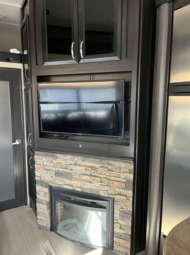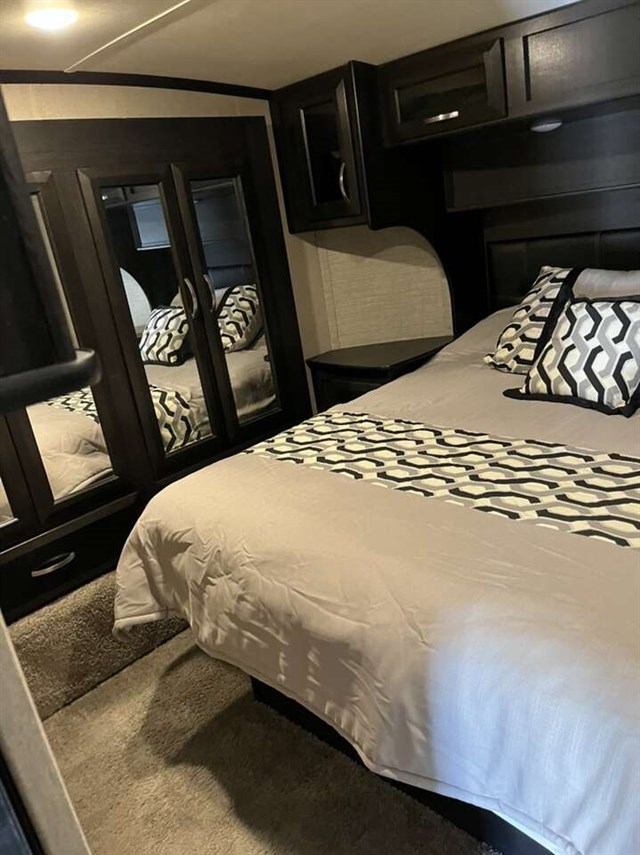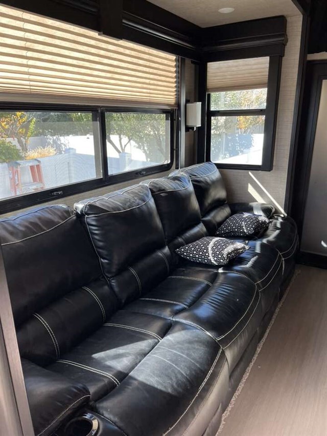 sale- 2016 Dutchmen Voltage 3605 Bunk Model with theater seats and 3 slides. This RV is approximately 39 feet in length and features a 5.5KW Cummins generator, 2 ducted A/Cs, automatic leveling system, electric/gas water heater, pass thru storage, docking lights, black tank rinsing system, exterior shower, central vacuum, fireplace, solid surface kitchen counters w/ sink covers, convection microwave, 3 burner range w/ oven, glass door shower, 3 Flat Panel TVs and much more!