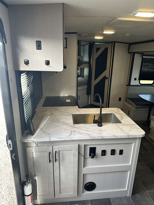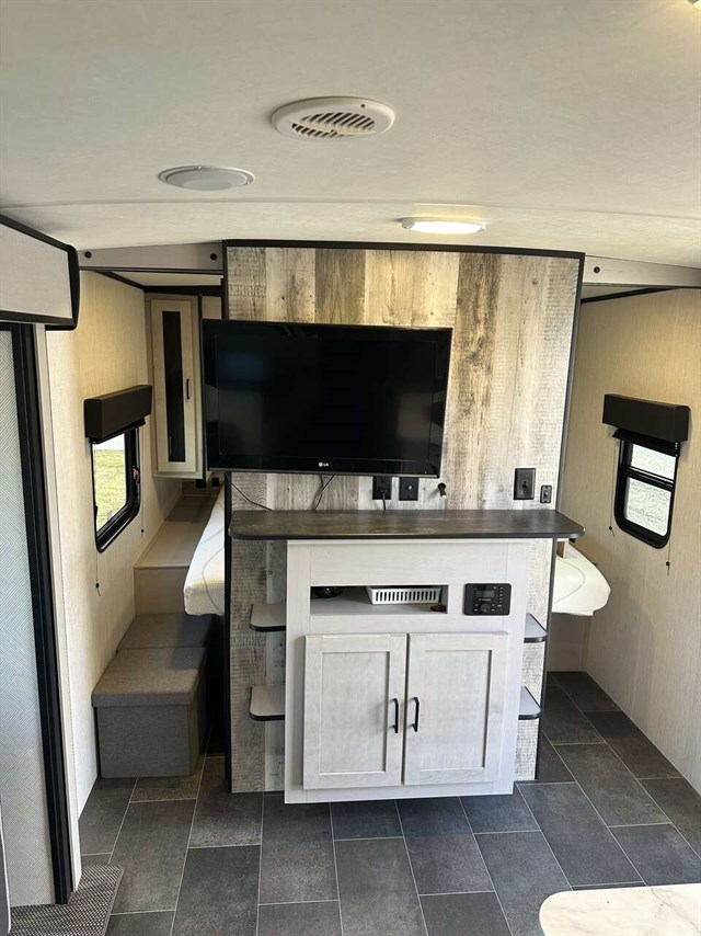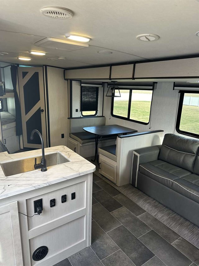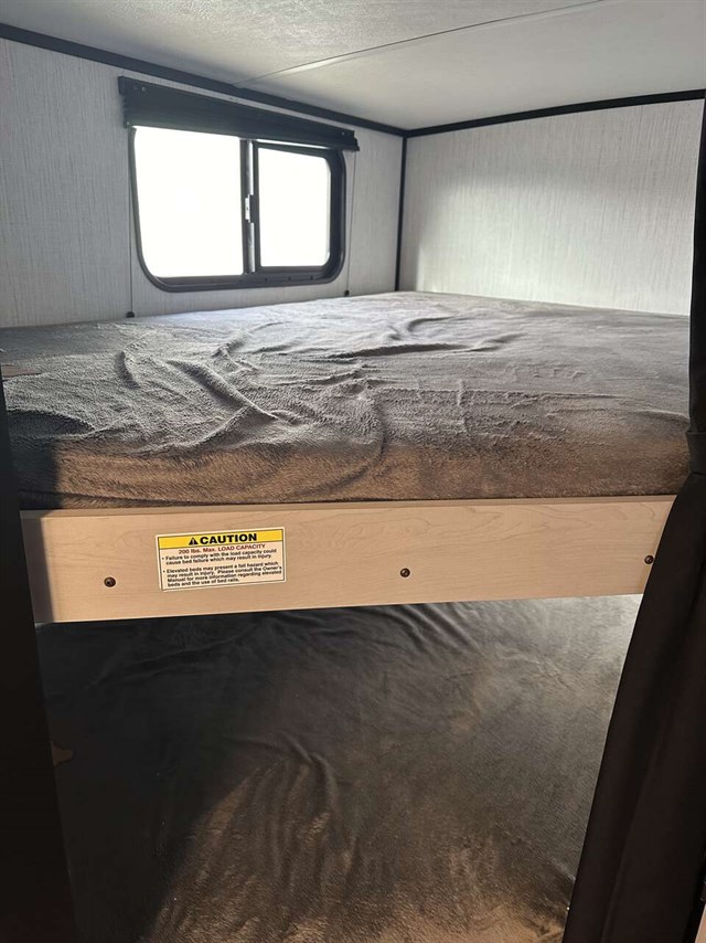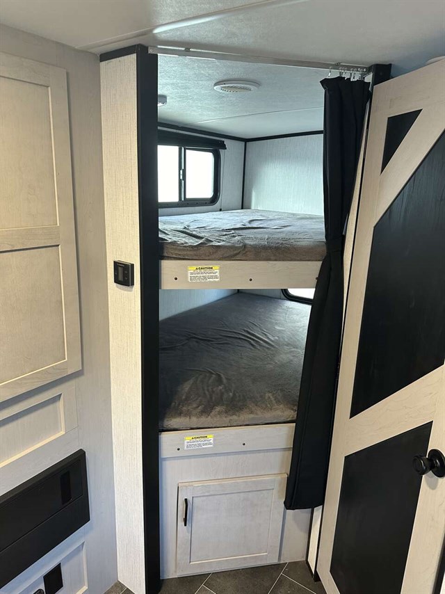 Sleek, full of great features and lightweight, the Heartland Mallard IDM26 is designed for the family who loves to be outside in the campground. A bunkhouse floorplan, the IDM26 has a single slide-out housing the comfy sofa and booth dinette which adds lots of room to roam. Double-over-double bunks in the rear plus all the other sleeping spaces adds up to 8 snoozers. Up front you’ll get a large walk around bed in the primary bedroom. To keep cool you’ll get dual-ducted 13,500 AC and for heat a 30,000 BTU furnace.