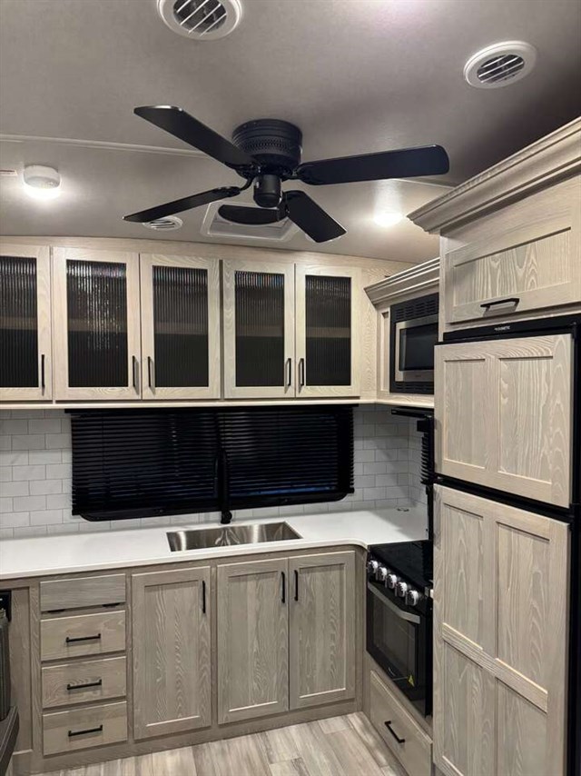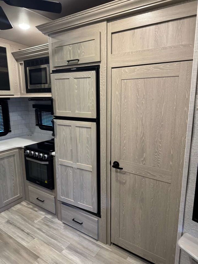 With any Rockwood Ultra Lite fifth wheel and travel trailer by Forest River RV, the superior construction includes a painted fiberglass front cap with clear coat, a full laminated one-piece walkable roof, aluminum truss roof bracing, and a six-sided full aluminum frame. Some safety standards include Dexter torsion axles, MORryde strut assist steps, and the TST tire pressure monitor system. The interior offers the OneControl panel with WeRV app control, screwed and glued, solid wood cabinet doors and drawers with hidden hinges, metal drawer glides and residential or upgraded hardware. You'll also find solid surface kitchen countertops, designer kitchen backsplash, plus many more features.