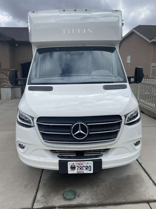 2023 Tiffin Wayfarer 23RW diesel motorhome on Mercades-Benz Sprinter chassis. This motorhome is a high quality built RV with all the whistles and bells. Runs like a dream and handles great. Cummin on board generator, battery powered and hook up to power. Only has 4008 miles(1836 of those were to drive it from the Tiffin Manufacturing Center in Georgia to General RV in Utah). Has full auto awning with bose speakers. Slide out also has an awning for protection. Theater seating which reclines with cupholders and side tables for each seat. Extra table to use with front seat captains chairs. Couch which folds down to a murphy bed which is very comfortable with storage under couch, loft bed, dash mat, microwave, induction stove top with pans included, pop up outlet on counter. Air conditioning included. Ipad type controls on wall by door for easy, handy access to use(slideout, lights inside and out, battery usage, water levels and more). Auto leveling system on wall for easy access by door. Other controls such as on demand hot water, inverter, generator on/off switch, etc are above the lg TV. Murphy bed control by couch, built in dirt devil vacuum for easy clean up, 3 TV's, one above sink for theater seating, one above drawers for couch watching and one located outside by door. Full bathroom amenities. Have all manuals that came with motorhome in original bag. I have included a photo of the original details of this RV when purchased in the photo section. Single owner with clear title. Willing to discuss reasonable offers. By appt. only. Call, text, email.