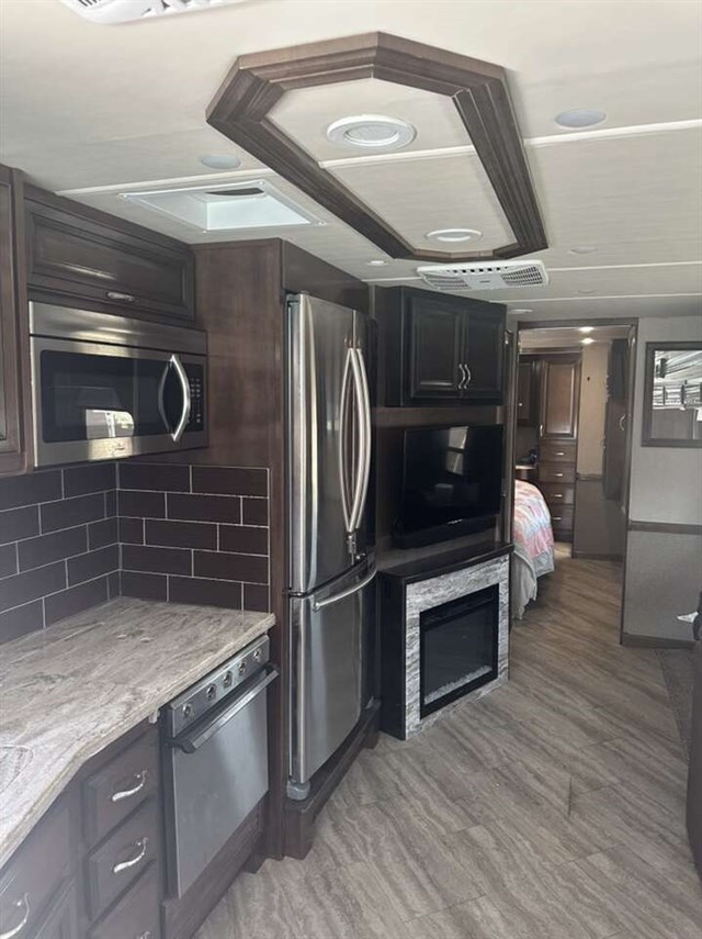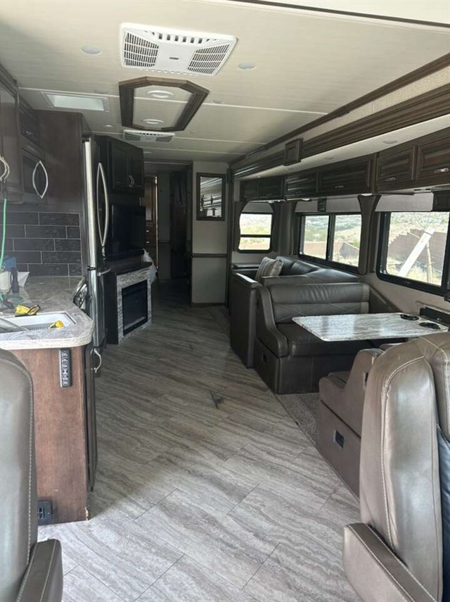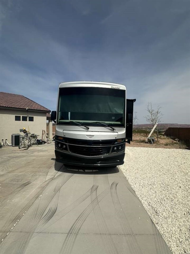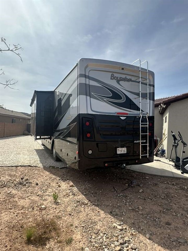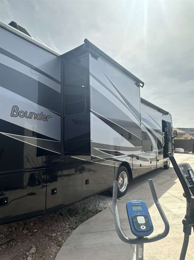 The 35K Bath & 1/2 measures approximately 36 feet 3 inches in length and is a full-scale luxury gas class A motorhome highlighted by 2 slide-out rooms, legless power patio awning Bilstein Steering stabilizer system, Ford chassis powered by Ford's 6.8L Triton V10 engine and Ford 6-speed automatic transmission with overdrive. New features for 2020 include a new cabinetry color option, updated interior decor, , Kenwood stereo, upgraded multiplex system with 7 inch touch screen, USB outlets in the bunk area on certain models, fireplace surround update, all new exterior graphics, 100w solar panel, Wi-Fi ranger, King satellite and much more. Additional options a 3-burner range drop-in, Hide-A-Loft and a power cord reel. Just a few of the additional highlights found in the Fleetwood Bounder include a residential refrigerator, exterior entertainment center, satellite radio, automatic generator start, Blu-Ray home theater sound system, power roof vent, enclosed control center, full HD video system, whole-coach water filtration system, power mirrors with heat, dual pane windows, and much more!