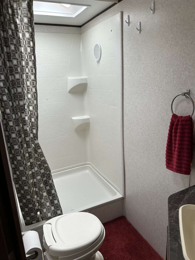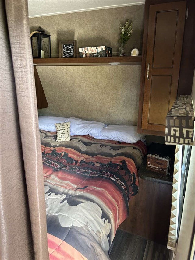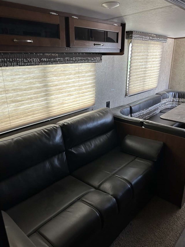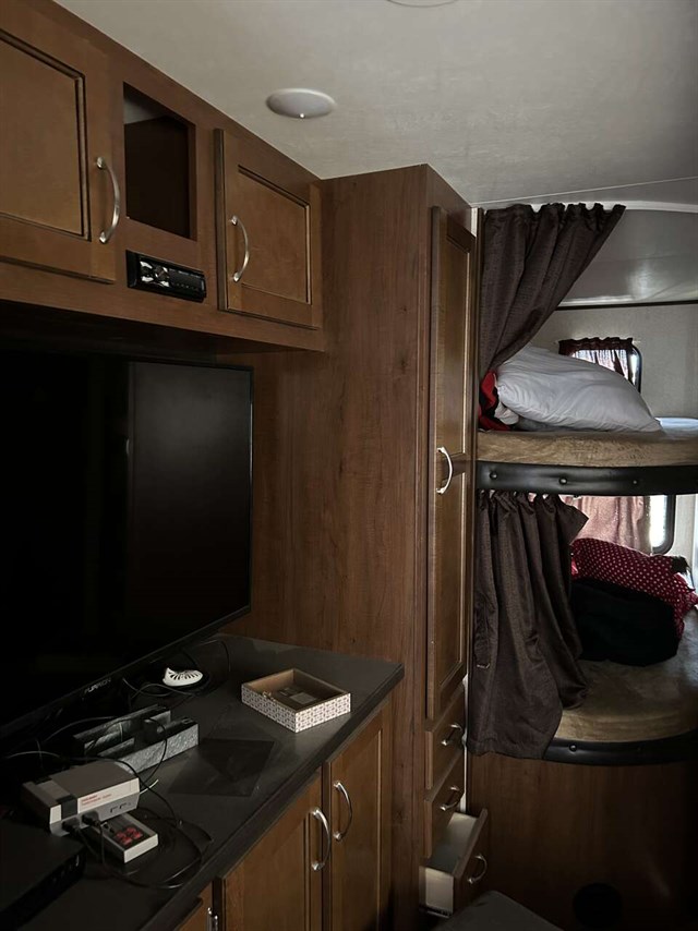 This is a great trailer we only used it 5-6 times. Yellowstone and Flaming Gorge were great we just don't have the time to really get the use out of it and we sold our big truck to tow it. There are 2 flat screen TV's, microwave, stove/oven. The shower is full size. I have never seen a shower this big in a trailer. The stereo system work great (inside and out). It is very comfortable and the A/C and heat works really well. I love the additional slide out outdoor kitchen. This is where I fry the bacon and fish to avoid stinking up the trailer, and the little refrigerator holds at least a 12 pack of cans. We are looking for $25,000 OBO