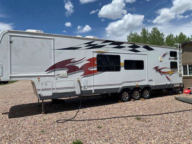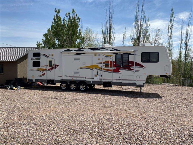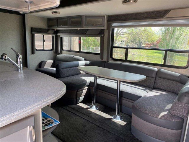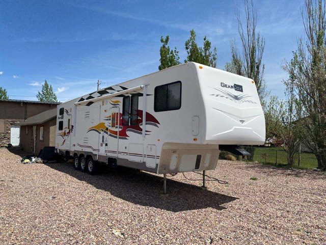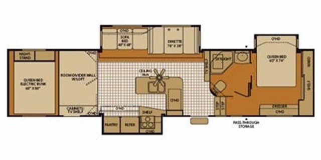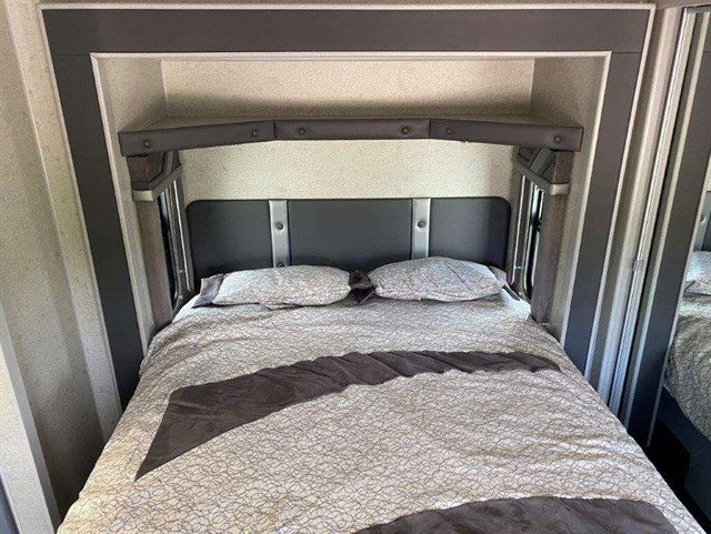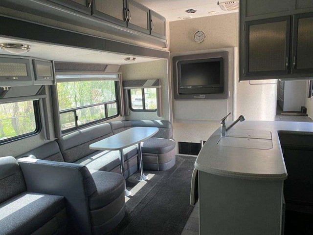 Aluminum frame sidewalls, Extreme Edition (winter package), tinted dual pane windows, heated & enclosed underbelly, side rear ladder, fuel/pump station, 2-door entry, garage ramp, large garage with electric bunk/sofa, 16" aluminum wheels, 10 gallon hot water tank, large awning, pass thru storage, A/C (ducted), large island kitchen, extra large pantry and kitchen storage, 2-door refrigerator, 3-burner stove top w/cover, 22" oven, microwave, double sink w/covers, ceiling fan, mega U-shaped dinette w/love-seat, LCD TV w/DVD & cable ready, queen loft bed w/ladder, neo-angle shower with enclosure, skylight in the bathroom, queen bed, large bedroom closet, built in dresser and more!