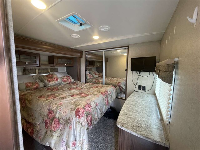 It has plenty of storage space for your belongings, including a closet, overhead cabinets, drawers, and an exterior pass-through compartment. You can bring everything you need for your trip without feeling cramped or cluttered.