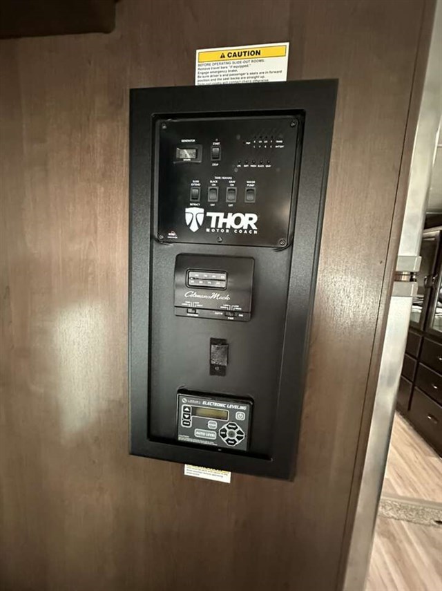 Queen bed, pull out sofa bed. Table converts to a bed. Bed over cab. 2 televisions with DVD players included. Convection/microwave.