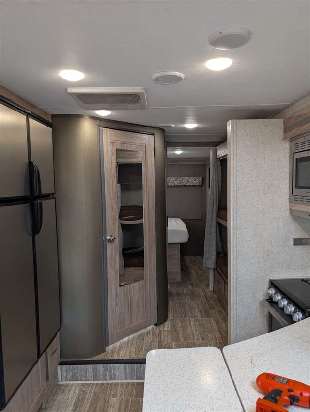 Interior bedroom panel on slideout has come loose — can be reattached with screws (just haven’t had time to fix)