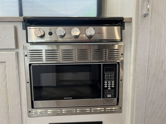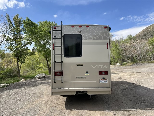 The Vita 24P features a well-designed floor plan with a slide-out that expands your living space. Enjoy the comfort of a fully equipped kitchen, a cozy sleeping area that accommodates 4-6 people, and a bathroom with all the essentials.