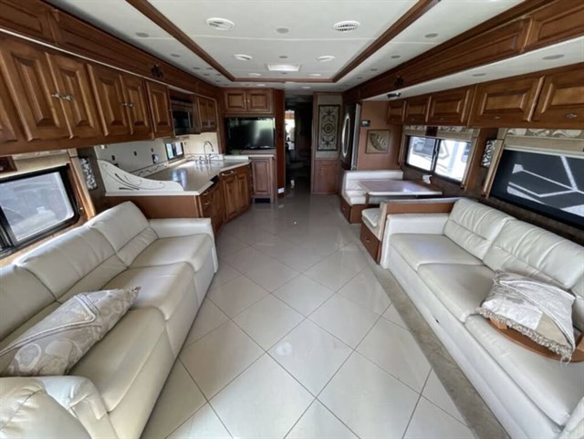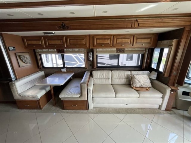 The Tiffin Phaeton 40QKH is a luxurious Class A motorhome from renowned manufacturer Tiffin Motorhomes. This 2011 bunk model has been well cared for and is ready to take you on your next adventure in style and comfort. This motorhome is built on Tiffin's Powerglide chassis and is a haven of luxury and comfort. Having 4 slides, the interior is spacious, and tastefully decorated with high-quality materials and finishes, creating a warm and inviting atmosphere that feels like home. The living area features a stunning porcelain floor, plush seating and a flat-screen TV, making it the perfect spot unwind after a day of exploring. The kitchen is fully equipped with a huge refrigerator including an ice maker, microwave/convection oven, stove, and plenty of counter space for preparing meals. The dinette area provides a comfortable place to enjoy a meal or play games with family and friends. Bunk beds are perfect for the children or grandkids, and the top bed flips up making the space an extra closet when not needed by sleepers. The master bedroom features a queen size bed with adjacent cabinets, ample storage, and a second flat-screen TV. You'll rest easy knowing that you have a comfortable and private space to retire to at the end of the day. Overall, the Tiffin Phaeton 40QKH is a top-of-the-line motorhome that offers a combination of luxury, performance, and quality that is hard to beat. Whether you're hitting the open road for a weekend getaway or embarking on a cross-country adventure, this motorhome is sure to exceed your expectations and provide you with memories that will last a lifetime. Size: 40.5 feet Sleeps: 9 Slides: 4 Chassis: Powerglide chassis Engine: 380 HP 8.3-liter Cummins engine Mileage 93035 Generator: 10 kW Onan – 1182 hours HVAC: 3 Air-Conditioner/Heat-Pumps 2 propane furnaces Water Heater: Propane on-demand (tankless) Refrigerator: Stainless steel GE residential fridge with ice maker Oven: Combination microwave and convection oven Power: 6 batteries powering 2 KW inverter for everything except A/C units Other Features • Porcelain floor • LED interior lighting throughout • Two upgraded “leather” sofa beds • Safe-T-Plus steering damper • Combination Shower/tub • Slide-out drawer/writing table at passenger seat • Added magazine rack, spice holder, key holder • CB radio • XM Satellite radio • Washer/Dryer (washing machine not working) • Extra factory installed seatbelts in dining booth • Spotlight with interior remote-control • Stored inside and never driven in winter Additional Options Available (cost is negotiable) - 2014 Ford Edge toad with Roadmaster towing package - Large color-screen Garmin GPS made for motorhomes.