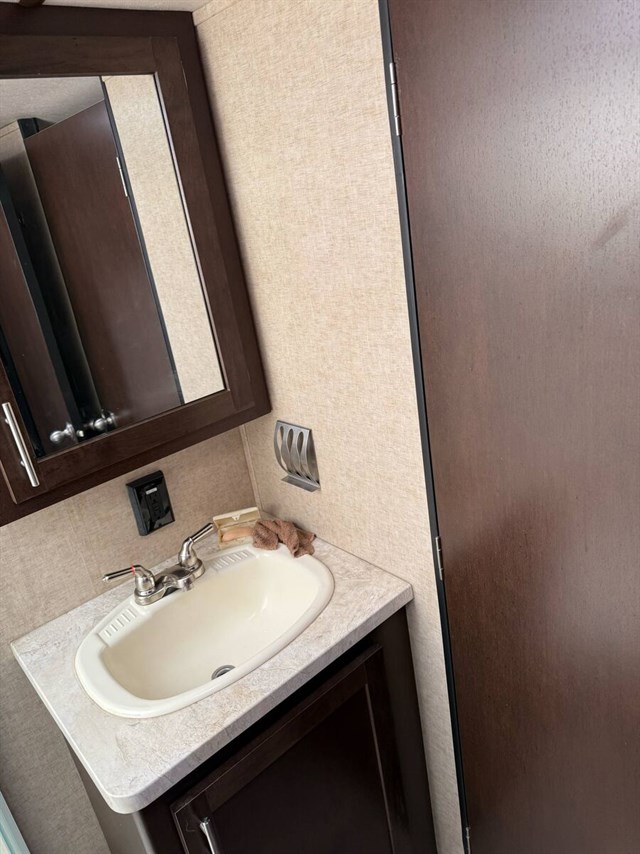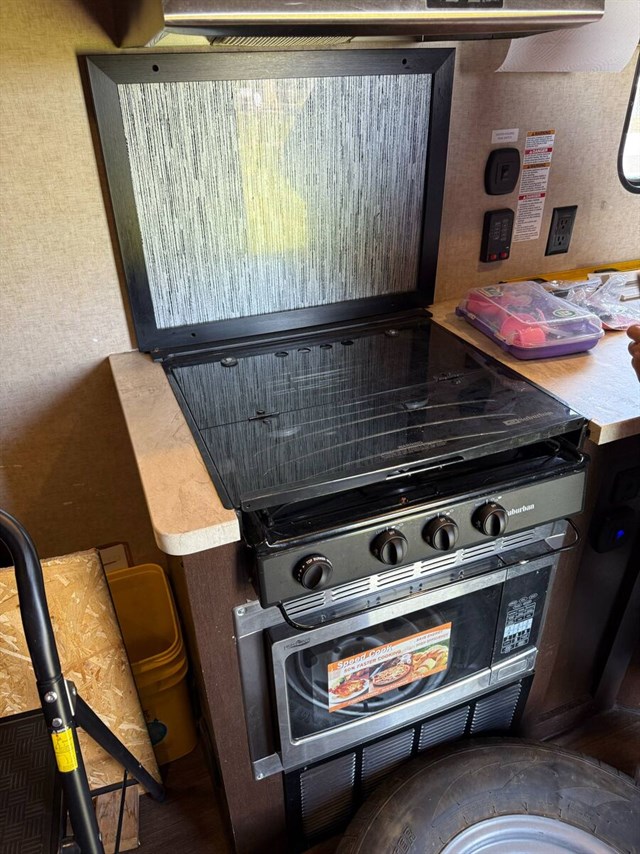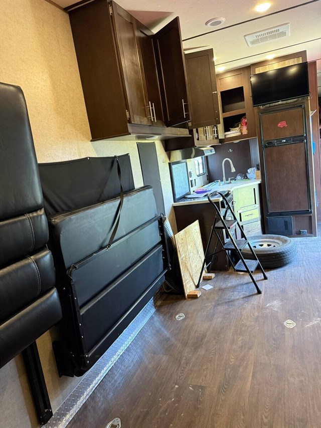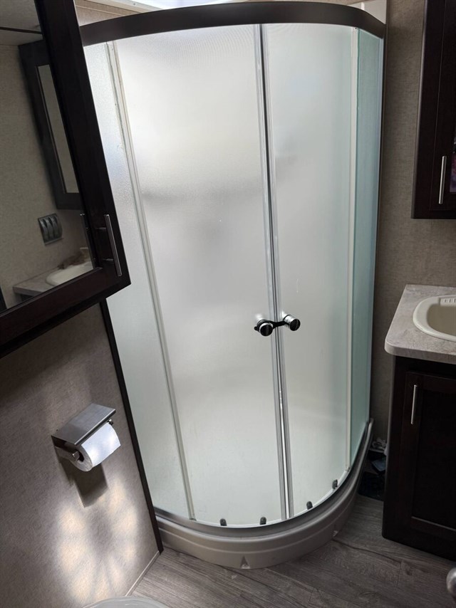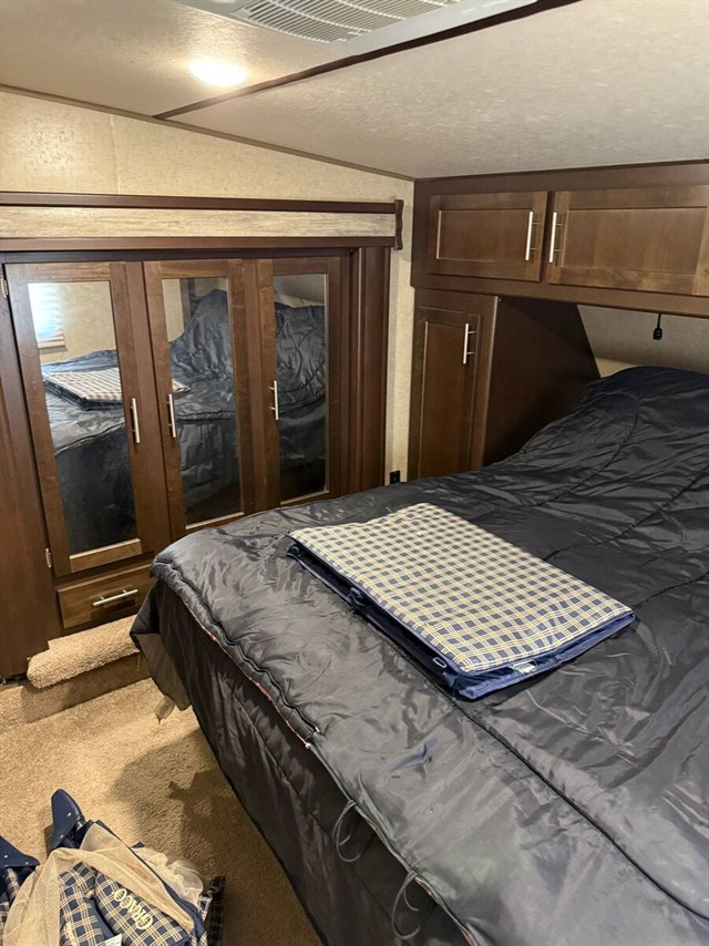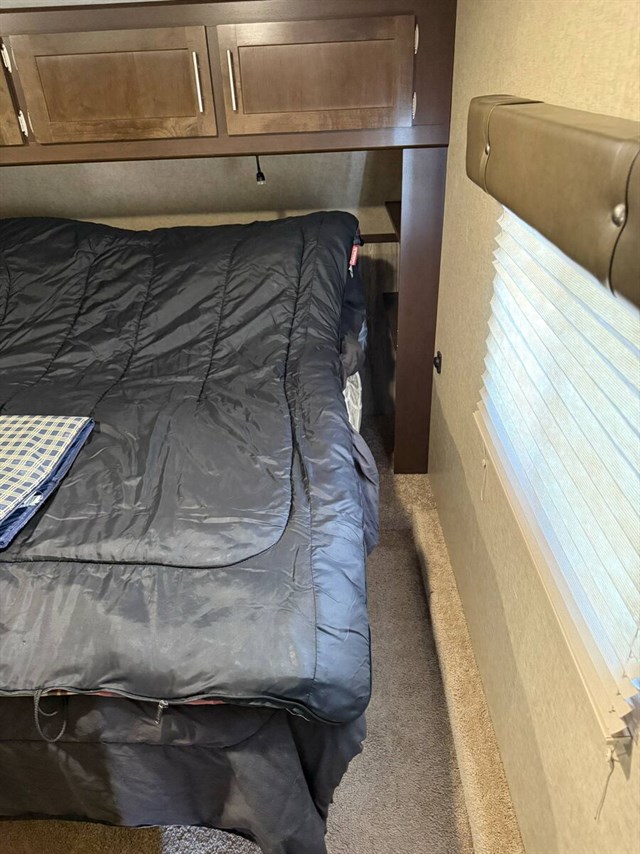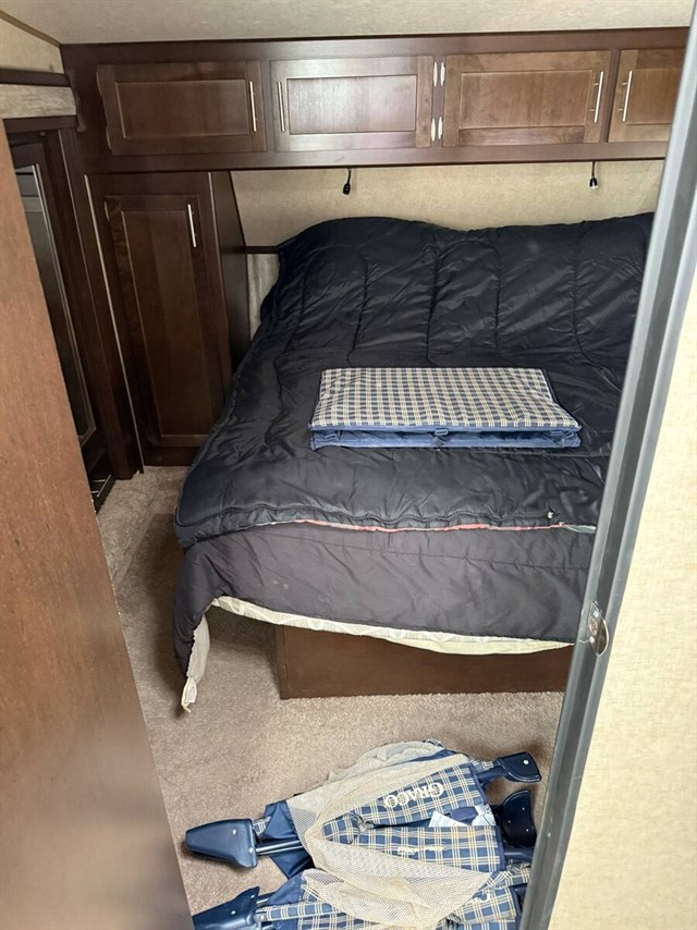 I'm selling this trailer. It's too big and we are going to downsize. Everything works as it should. The length is 36' and the garage is 18'.