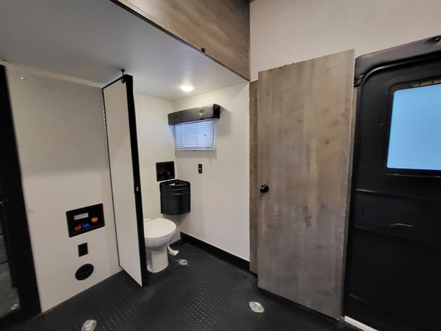 Two 15000 btu air conditioner's, furnace, microwave / convection combo, 10 cu ft gas/electric refrigerator, 6 gallon water heater, 5.5 KW generator, electric jacks, outside shower, 2 power awnings, reclining sofa, 50 amp electrical service, two 30 tv's with disk players, 100 gal fresh water, 76 gal black tank and 76 gal gray. Two 7.5 gal propane tanks, ramp door / fenced patio, stereo with indoor/outdoor speakers.