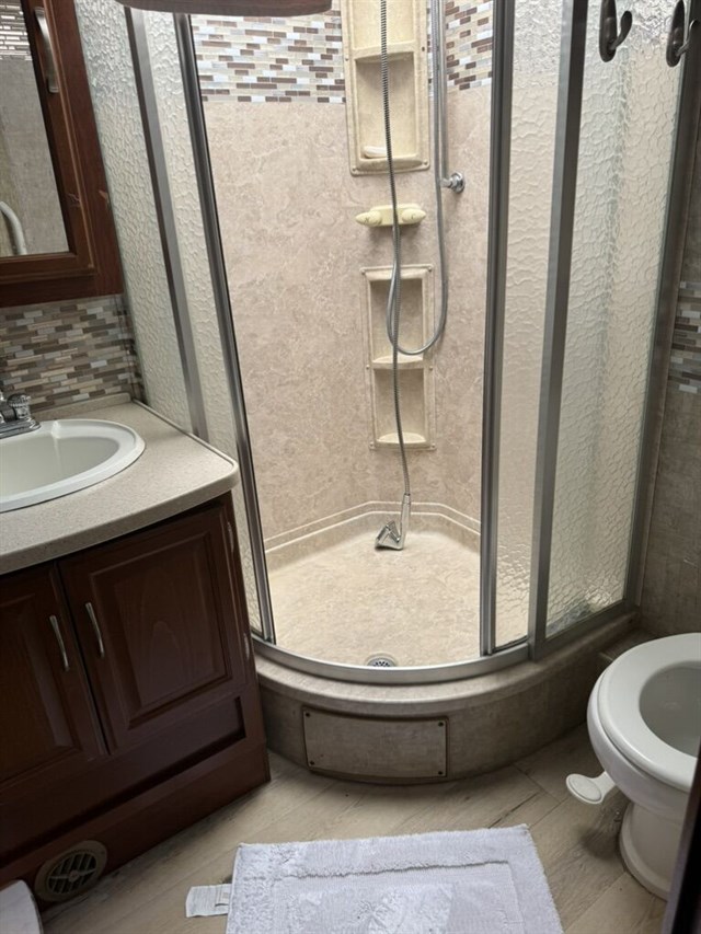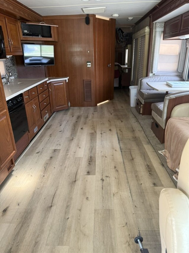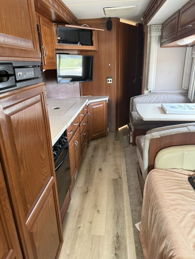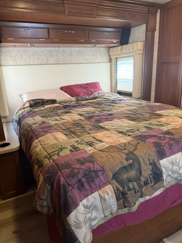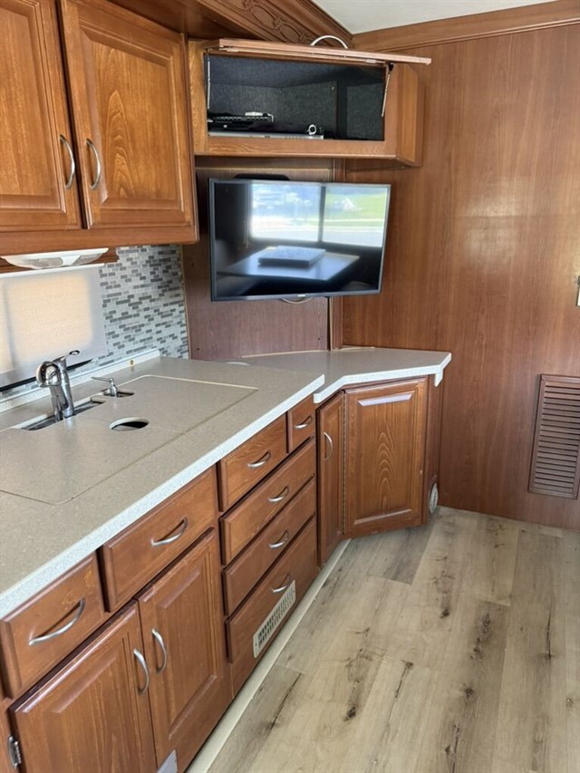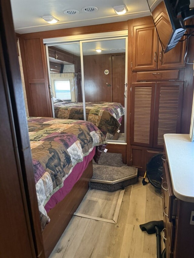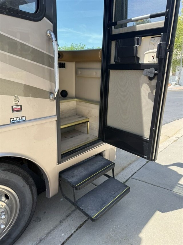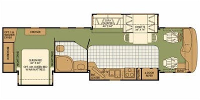 Triple Slide Class A Diesel, Rear Bedroom, Wardrobe, Opt. Washer/Dryer Prep., Dresser, Slide Out Queen Bed, Opt. Air Mattress, Toilet, Lavatory, Shower, Slide Out Double Kitchen Sink/3 Burner Range/Pantry/4 Door Refrigerator, Slide Out Sofa/Booth Dinette, and More!