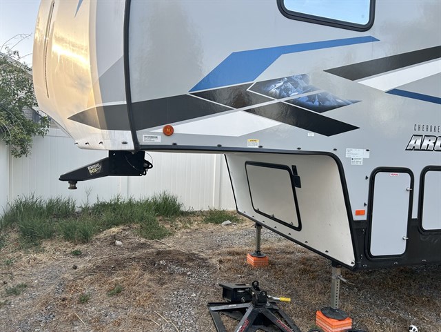 You'll have the very best time tackling outdoor adventures with the Forest River Cherokee Arctic Wolf fifth wheel! Each model has been constructed with a “ToughBend” rigid skirt metal design, Leash Latch pet safety technology, an outside shower with hot/cold water, a 1x engineered wood “SuperTruss” roof structure with 3/8" decking, and aluminum rims. The interior offers you a dual-zone Bluetooth stereo optimized for USB flash drives, iPods, and other MP3 players, and you'll find motion-sensor lighting to help you see when it's dark. There is an interior-mounted “My RV” control pad diagnostic and auto level control pad as well as a smart monitor panel with smart phone Bluetooth connectivity. These models have been prepped for a second air conditioner, and they have also been prepped for a bumper-mount swing-arm grill.