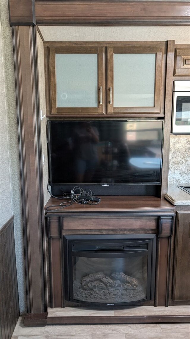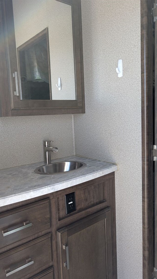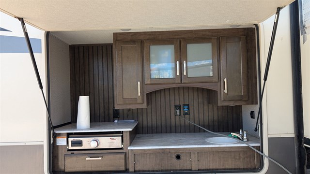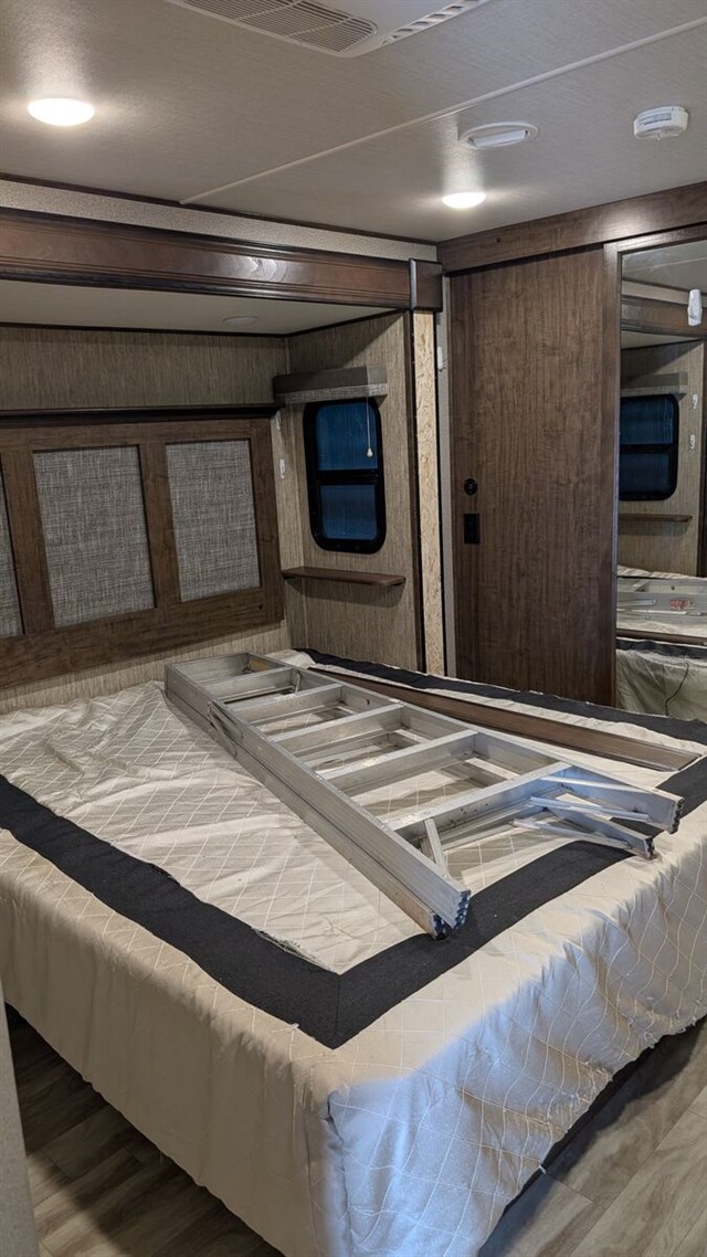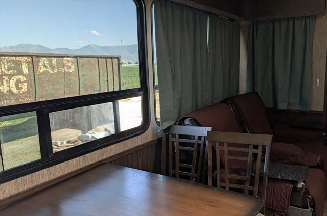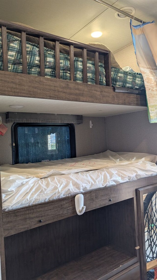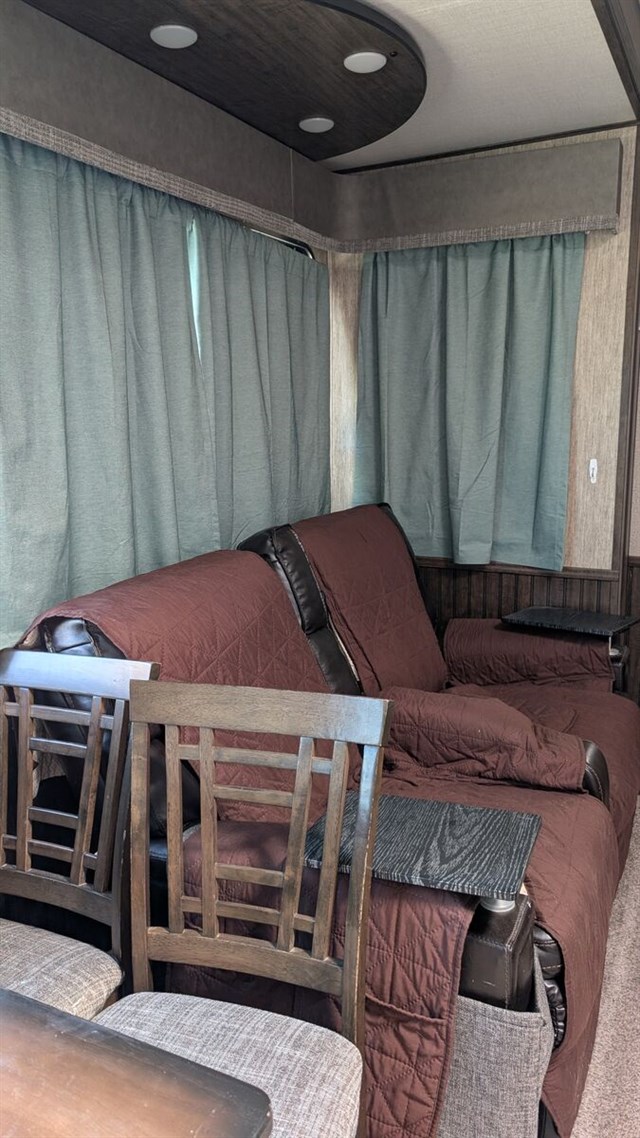 This 5th wheel features 2 bedrooms and 2 full bathrooms. Sleeps 7. This unit is 40.4ft x 13.5ft featuring 4 slides for additional space. The outside kitchen features a sink, griddle and outlet for a small refrigerator. This unit will come with all extras needed for use; power cable, sewer hoses, water filtration system, custom skirting, and more. The washer/dryer combo will come with the unit. It has a self leveling system for easy set up. With aluminum frame and fiberglass walls, this unit is rated for four seasons. It features two A/C units, furnace and electric fireplace. Base weight 14,054lbs and carrying capacity of 2,746lbs. Fresh water tank 91 gal. Grey water tank x2 53 gal each. Black tank x2 53 gal. each. This camper has been used with love. There are some minor cosmetic flaws. Windows are intact. The bubble wrap is for sun protection and we cover the windows when it goes into storage.