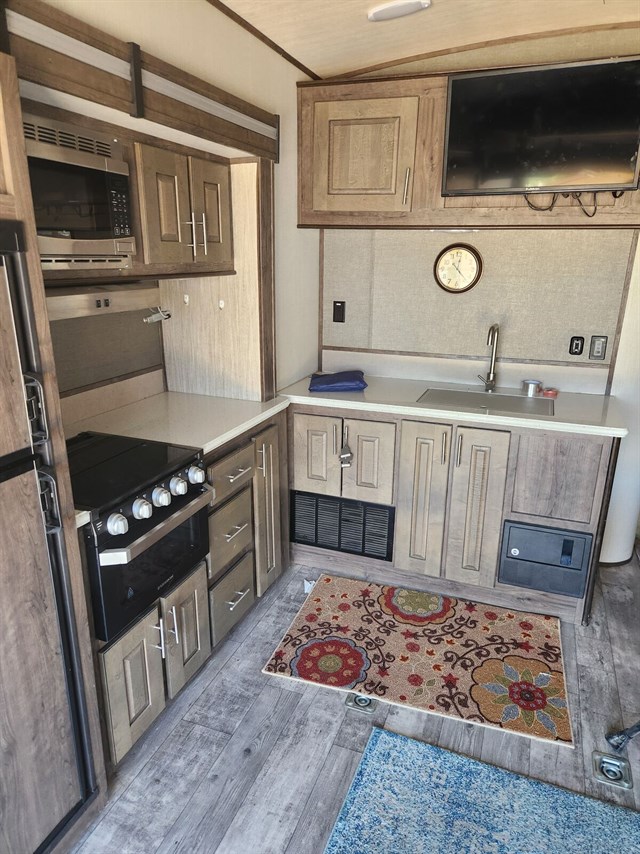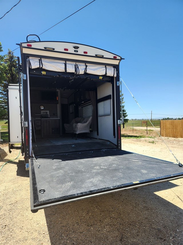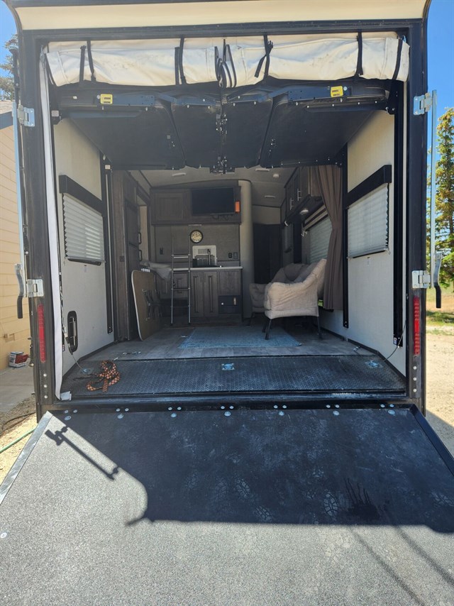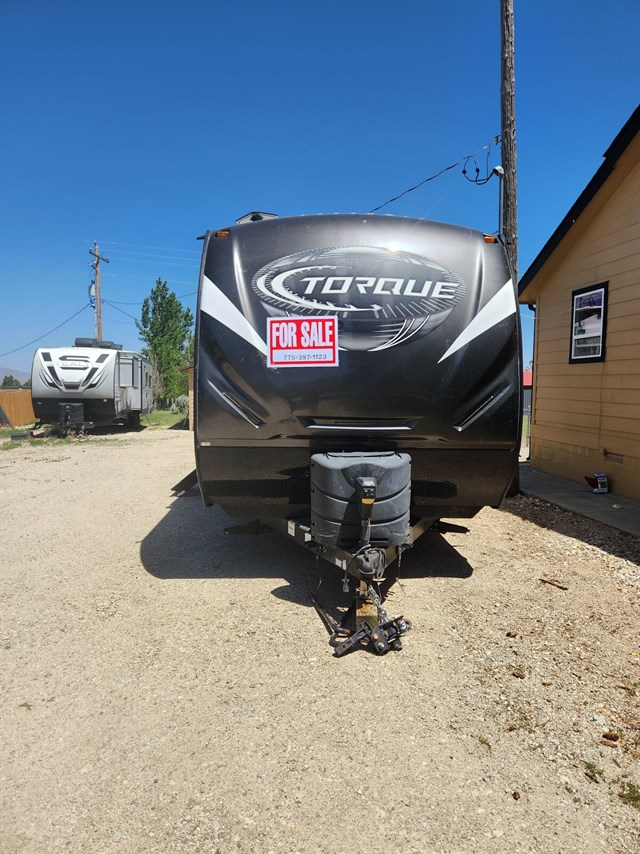JUST IN TIME FOR HUNTING SEASON! 2019 Torque T26 Toy Hauler: King bed. 2 Tv's. Well kept toy hauler. Will haul a buggy up to the size of a Honda Pioneer 1000, but it is a tight fit. Height to the upper bed is 7'2". Cabinet to Refrigerator width is 64" for your side to side estimation. Has an on-board well maintained 4000W Onan generator with 132 hours of operation time. Length of the trailer from bumper to hitch is 30.7'. Height 12.7'. Dry weight is 7,780 lbs. GVWR 12,800. Hitch weight 1080 lbs. Fresh water tank capacity: 110 gals. Gray water: 35 gals. Black water 35 gals. Comes with 2 60lb propane tanks. Ramp has cables to be let down for a patio. Possibly the load leveling hitch that can be discussed if you do not have one. I live in Elko/SC/Lamoille area should you want to come and test-fit your SxS or MC's.