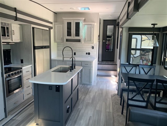 3190 RLS 36’ Lots of expensive extras! Only used a few times. Stored in a climate controlled shop. Premium thermal package. Large picture windows with blackout shades, California king with a Casper mattress, washer and dryer, reverse osmosis, seven filter, drinking water system, new tall faucet in bathroom, large pantry, 50 inch smart TV, wine guard 300+ Antenna, self adjusting satellite dish, built in remote control, stereo and fireplace, soft start AC, remote control, slides, outdoor LED lights and stereo, electric awning with attachable shade screen, master track 14 ply all steel ST tires. Everything is brand new and in perfect condition.