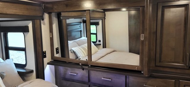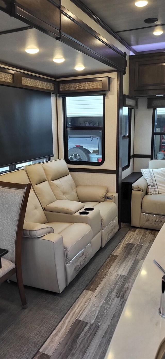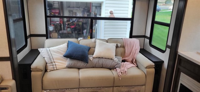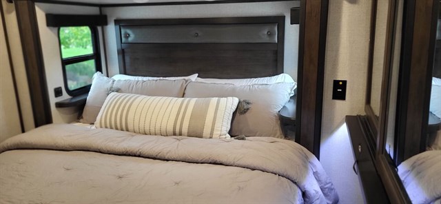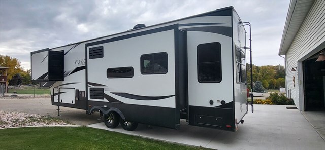 The first thing you will notice is the trailer still smells new inside. It has been slept in 5 times. It's set up to tow a boat behind. I tow an 18.5 ' Crestliner. Most trailers have 40-70 gallons of fresh water storage. This trailer holds 168 gallons of fresh water on board. No transfering water from the barrels in the back of your truck. I installed a sound bar with a sub woofer. I also have two Cummins 4500 watt generators on board. If you want the gens, we will negotiate. I have a tool box on board as well, again we can talk as I'm open to throwing them in with the deal if the price is right. It has two A/C units on top and everything works perfectly. I love the big range and the double fridge has been awesome. None of my kids have a trailer. We bought it to go camping with them. But when you have the only trailer, guess where everyone wants to be. I love them, but it just doesn't work. The recliners are power and the TV retracts into the counter. The master bedroom has a tv as well, it's never been turned on. It has an electric 6-point leveling system. It is a 4 season trailer. Fully insulated bottom with tank heaters. Elk hunting late season? No problem. Serious buyers only please. Thanks for looking.