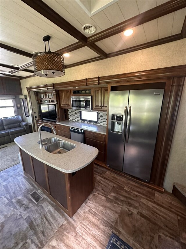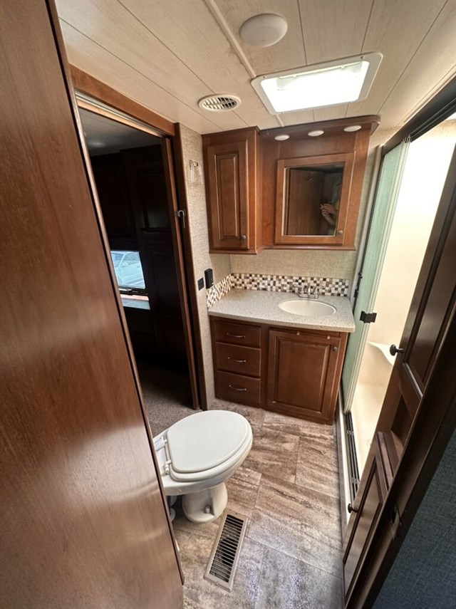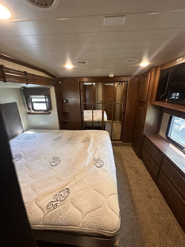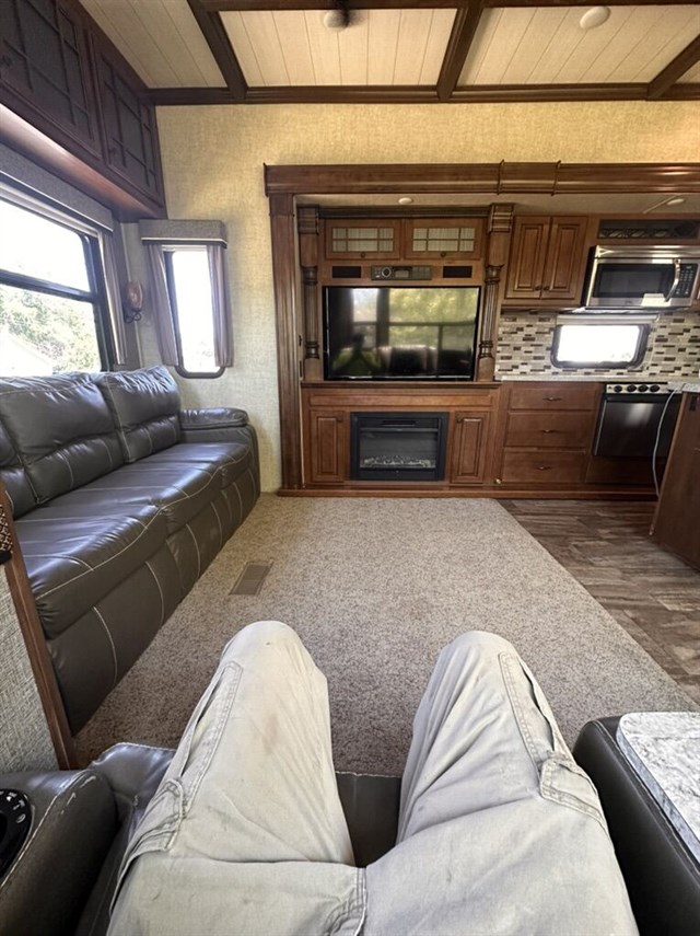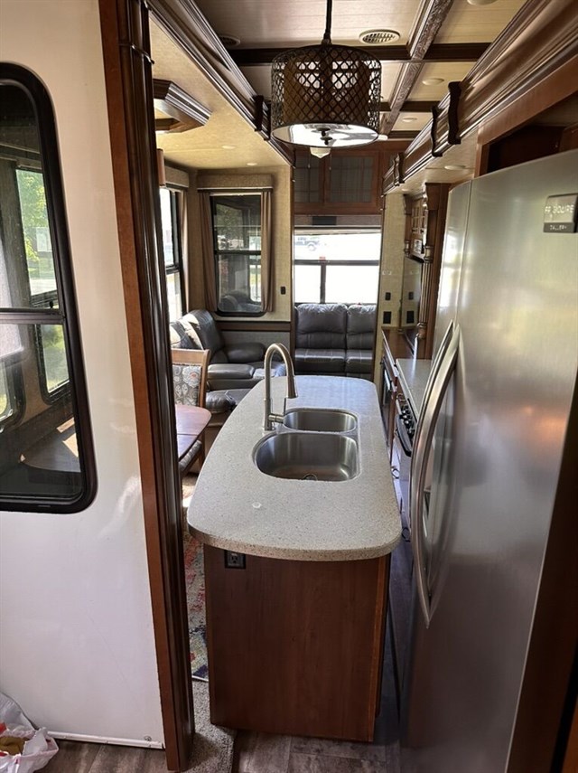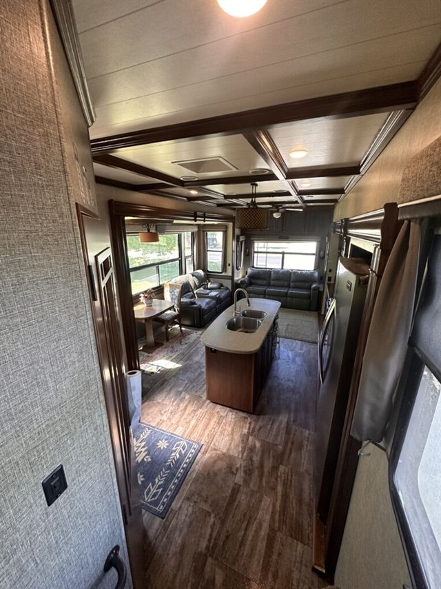 Great trailer. Getting rid of it because haven’t had time to use it. And running out of space to store it. Very spacious, 40’ long, three hydraulic slides, lots of outside/underneath storage. Tires are fair, probably 60% left on them. 6 hydraulic self leveling jacks. Receiver on the back for double pulling. 110 gallon fresh water tanks. Fully inclosed and insulated underbelly. Two 80 gallon gray tanks. Two 7 gallon propane tanks. On the roof, two AC units for main bed room and living quarters. One solar panel to run the inverter, and a Tv antenna. Electric awning in great shape. On the inside, four person couch that turns into a king size bed. two recliners, removable 2 person dining table. 55” Tv above the electric fireplace. Sink/island. Everything in kitchen work great. The fridge and half of the 110 outlets can work off the inverter (no generator needed). large pantry, closet downstairs set up with washer dryer combo. (Never used it, grandpa had it in the garage for a couple years. It was out of a motor home. All hookups are there. Upstairs in the bathroom, lots of storage, full sized shower with seat, I’m 6’4” and still had plenty of room. Upgraded to the domestic 300 toilet. It is full sized porcelain, high power flush plus a hand held sprayer. In the bedroom, king size mattress, tons of storage in the built in dresser, closet with drawers inside, under the bed. Has and 1’x1’ safe built into the closet as well. We have loved this trailer, many memories and it has never let us down.